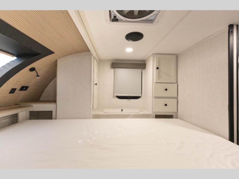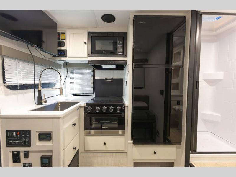 Each Backpack Edition truck camper by Palomino is constructed with high-density block foam insulation, an alpha super flex membrane roof, and Azdel substrate for added durability. You will also love the white or grey hi-gloss exterior fiberglass that is eye-catching and easy to keep clean. Inside, you'll find solid surface countertops, white cabinets, an undermount sink, and more comforts. The 200-watts of solar power and 100 Amp lithium battery will keep you powered up, and the electric jacks will have you set up at camp in no-time!