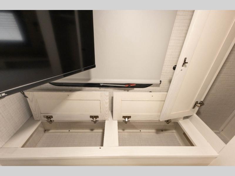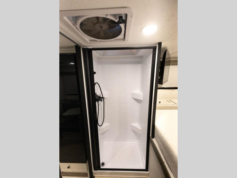 Enjoy time at the campground in this cozy truck camper! The cooktop and microwave oven will let you make meals each day, and there is a 11 cu. ft. 12V refrigerator for perishables. The sofa with a table provides a place to dine together, and this unit includes a split style dry bath with the shower on one side, and the private toilet and sink on the other! A front queen bed includes an entertainment center with a TV, dual chests, and a closet for ample storage space!