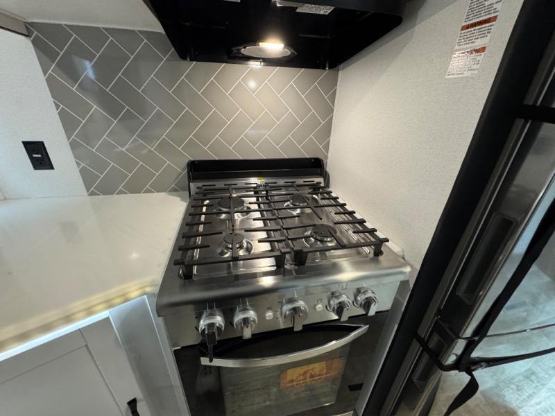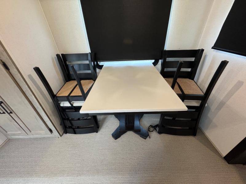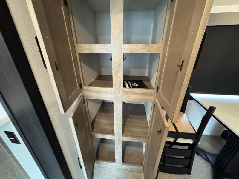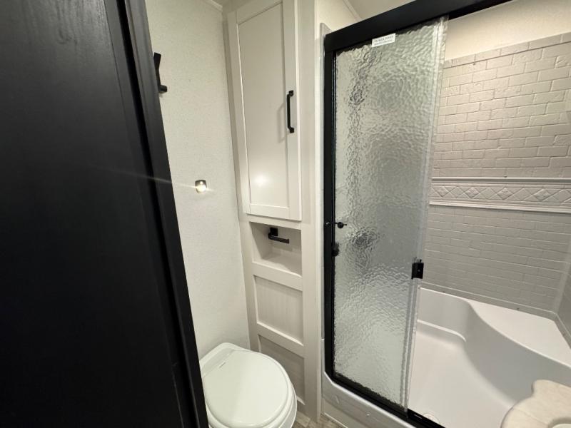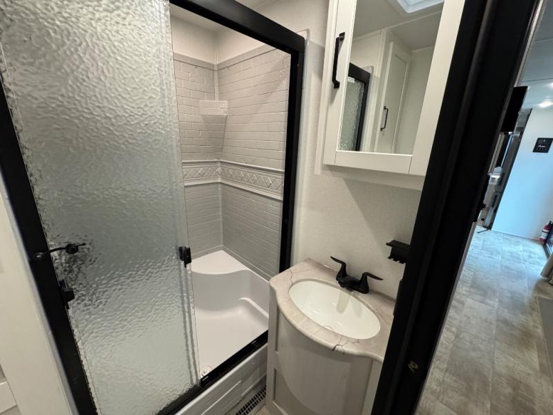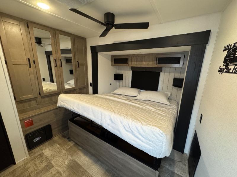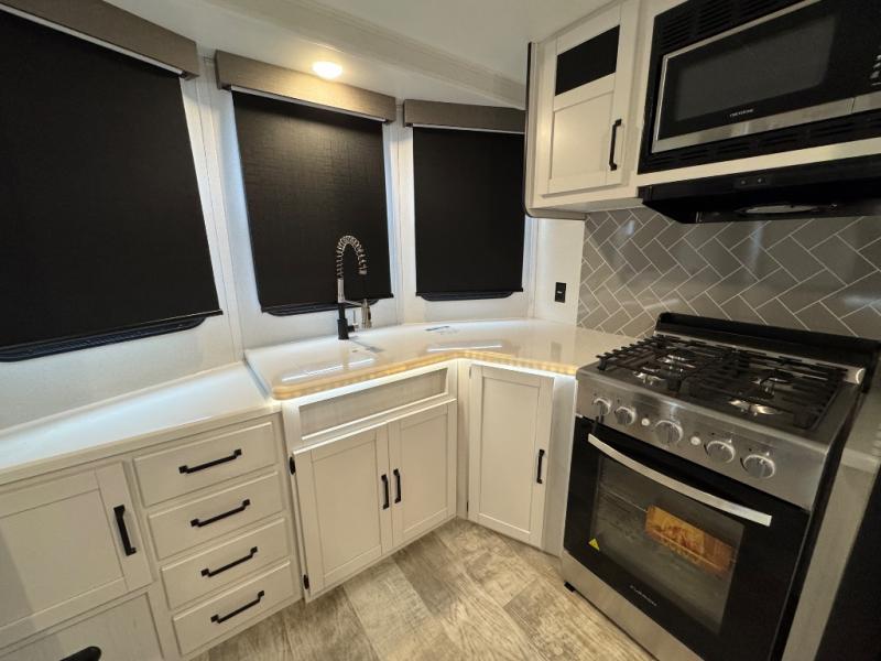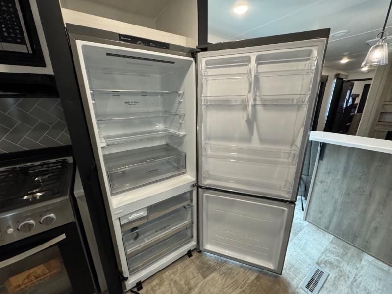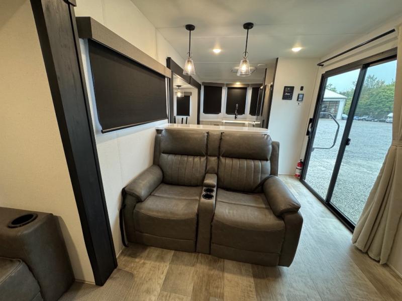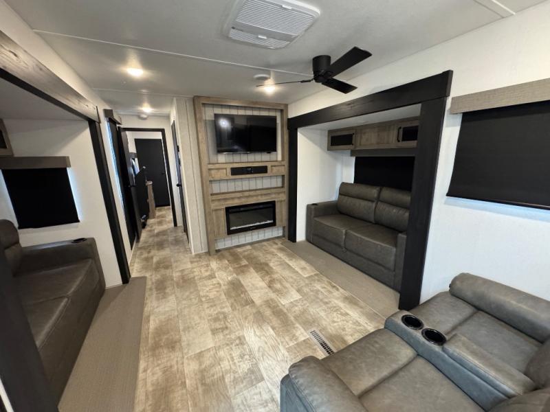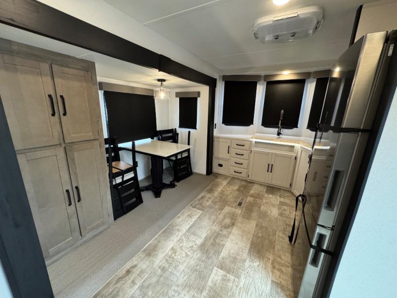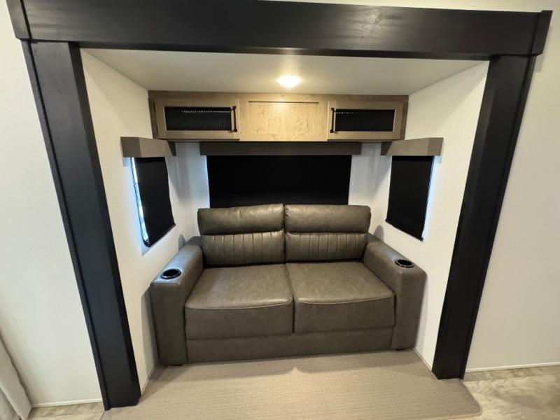 If you are looking for your own space in your next destination trailer, you have found it! With a front separate kitchen, a middle separate living area, a full bathroom and a rear bedroom, you can call one of these spaces your own. The cook will love the front counter space and appliances, and you can dine at the booth dinette or the breakfast nook. Someone can be visiting with friends and family while sitting on the two sofa slides or the two recliners, while another is getting ready in the full bathroom. You will sleep soundly on the king bed slide out, and the closet with washer and dryer prep option will make full-time RV living easier than ever.