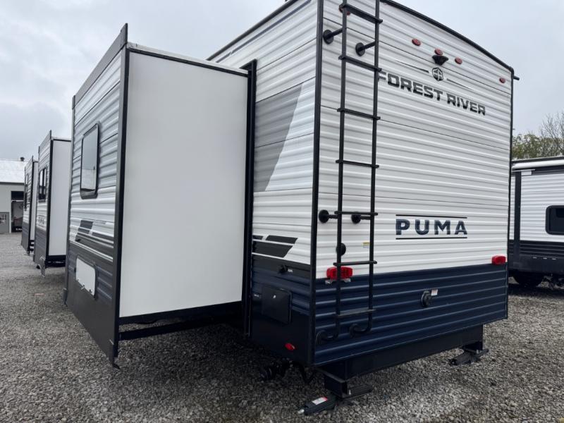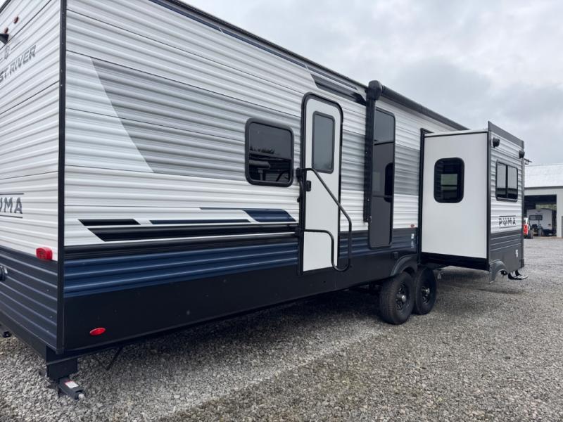 Each Puma Destination trailer by Palomino is designed to give you unforgettable getaways to the destination of your choice! The Value Shopper Package features Congoleum linoleum, LED lighting, an AM/FM/Bluetooth stereo, and an upgraded kitchen faucet to name a few comforts. Two exterior speakers are included with the required Marquis Edition, along with solid surface countertops, night roller shades, an outside shower, and four stabilizer jacks to help keep your unit secure. You will also appreciate the roof and side mount solar prep for off-grid capabilities, as well as WiFi prep if you need the option to work while you're away from home!