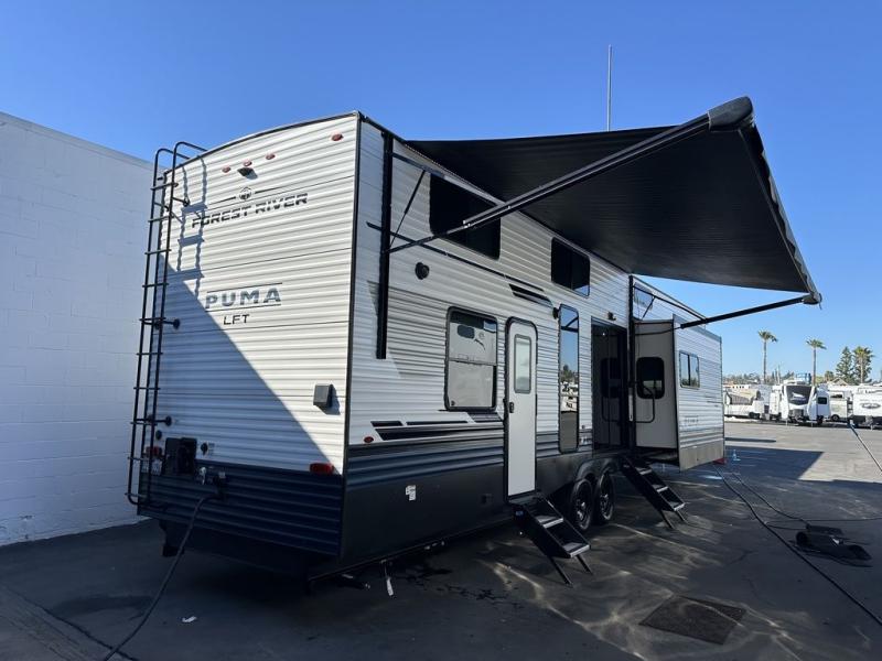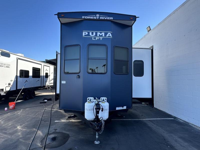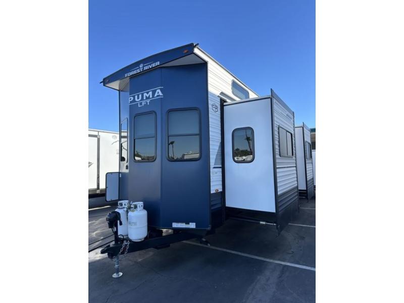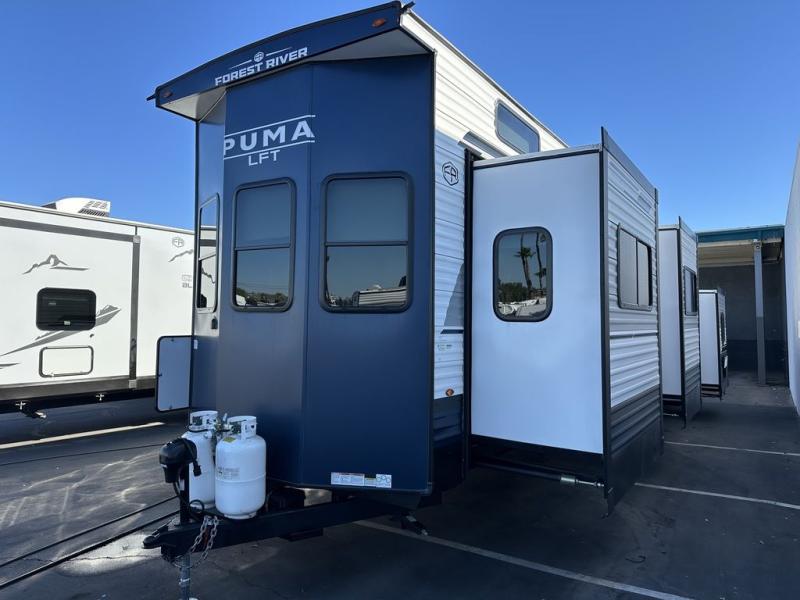 Each Puma Destination trailer by Palomino is designed to give you unforgettable getaways to the destination of your choice! The required Value Shopper Loft Package includes Congoleum designer linoleum, night roller shades, LED lighting, and a 24" stainless steel oven with a four burner stove so you can make meals just like you would at home. The tankless water heater is another feature you won't want to camp without, and there is WiFi prep, solar prep, plus optional washer and dryer prep for the option to further customize your trailer. An outside shower is included with the required Loft Package, along with two exterior speakers, solid surface countertops, four stabilizer jacks, and more!