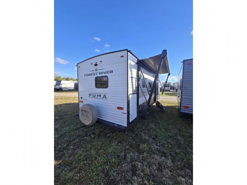 With any Puma Ultra Lite travel trailer by Palomino, you will experience a lighter weight RV that is eco-friendly and offers great fuel efficiency with maximum towability. The exterior offers front diamond plate, a power tongue jack, back-up camera prep, and an electric awning with an LED light strip. There is also a 30 Amp converter, two exterior speakers, and a spare tire and carrier for added convenience. You'll love the interior with its Congoleum linoleum, LED lighting, bath skylight, and a bedspread with shams for a more at-home feel!