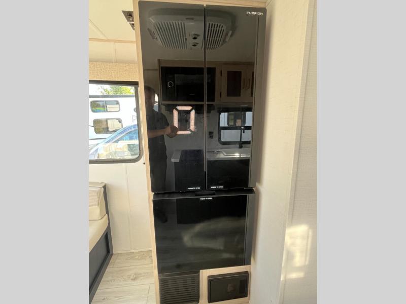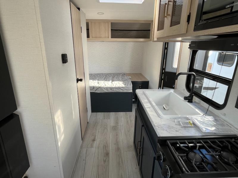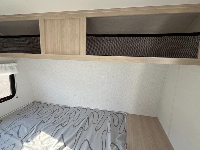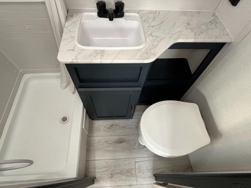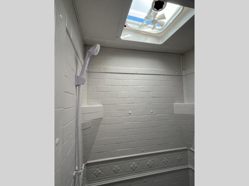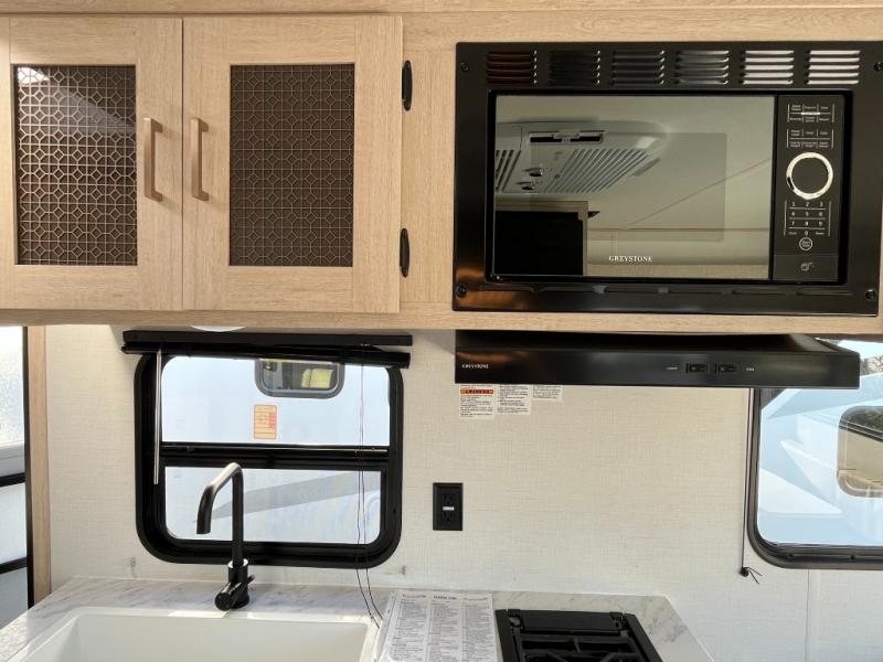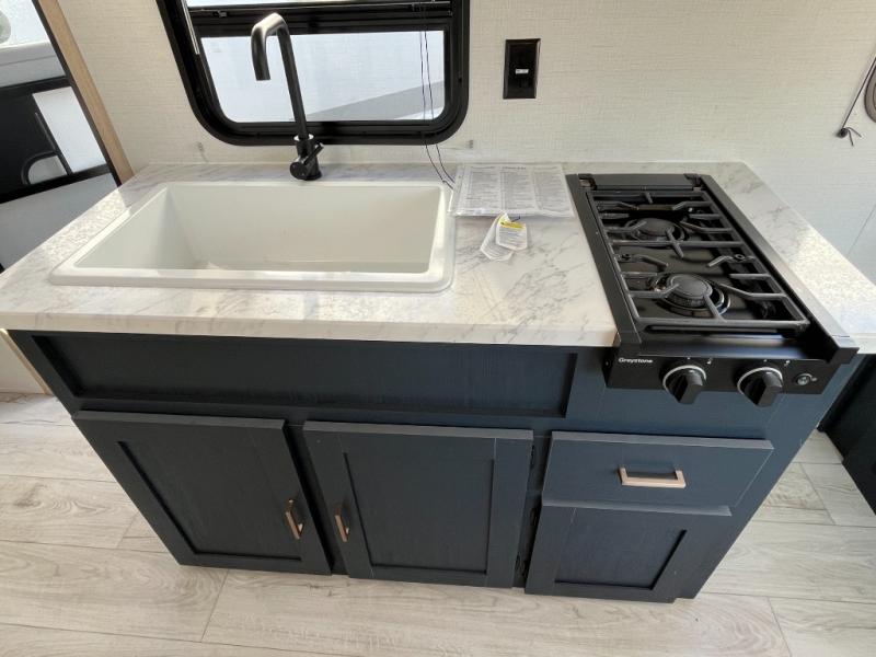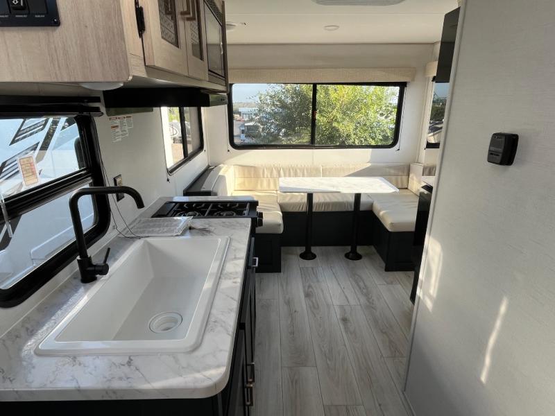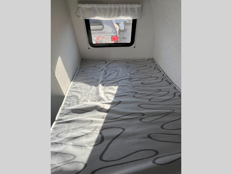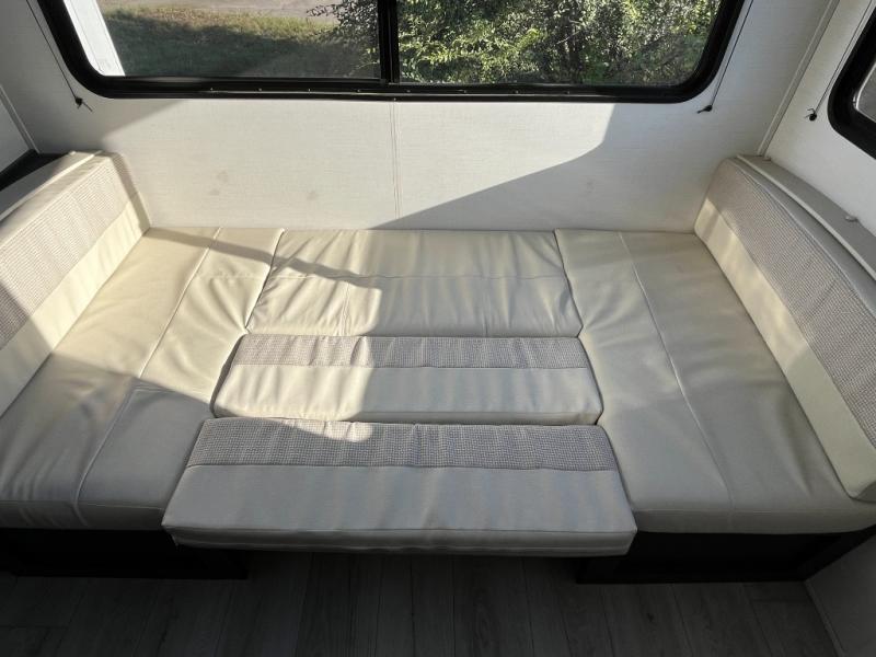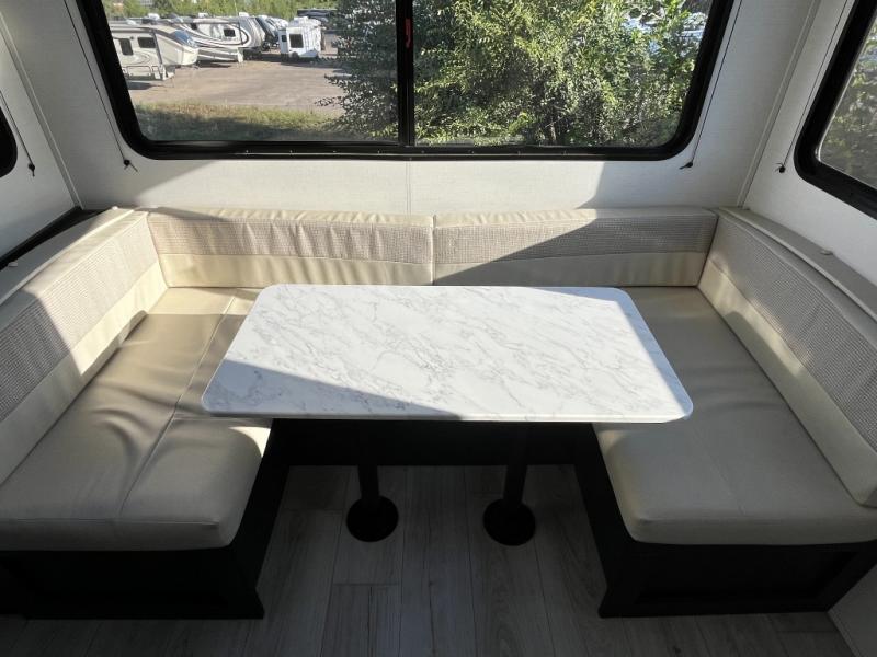 Camping with your friends or family doesn't have to be hard! This easy-to-tow, store and clean up RV allows two to four people to sleep comfortably on the U-shaped dinette along the rear wall with a large window and the front bed with nightstand. The kitchen includes a 10.7 cu. ft. 12V refrigerator, a microwave, plus a two-burner cooktop for preparing meals just like you do at home.
