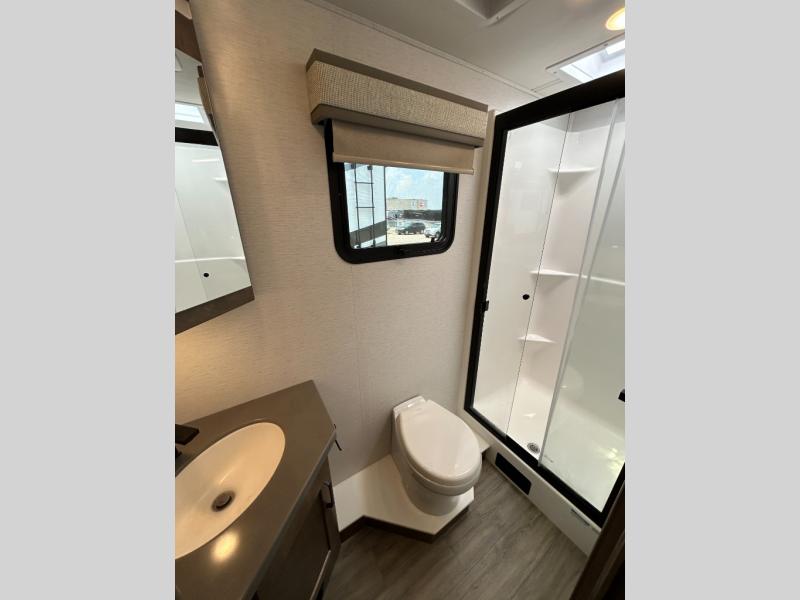 You will have the confidence to go anywhere with the Renegade Veracruz Super C diesel motorhome! It is built with a 6.7L power stroke diesel engine with 330 horsepower and a four-wheel drive system to go off-road when the adventure calls for it. The 8" LCD touchscreen infotainment with wireless phone connection will come in handy when you want to play your favorite tunes. Some other key features to make note of are the XLT trim package, the four-point automatic hydraulic leveling system, the Maxx Air fans in the bath and living area, and ducted heating and air conditioning to keep you comfortable all year long! The interior will have you feeling right at home with three stylish decor options, solid surface countertops throughout, solid wood cabinets, and plenty of storage for all your belongings!