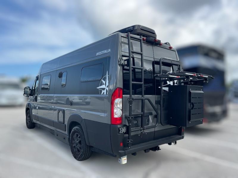 The Roadtrek Westfalia Class B gas motorhome is built on the Ram ProMaster 3500 chassis, offering reliability and safety. The stylish interior is Euro-inspired with black and white seats. The Uconnect HD radio with Apple Car Play and Android Auto includes a 10.1" display so you can easily see your route. Technology features like a wireless charging pad, 4G LTE Wi-Fi hotspot, and multiple integrated USB charging ports mean you can stay in touch, but you'll also love disconnecting as you gaze up at the stars. Outside you'll find a 13' power awning to protect you from the sun or rain, heavy-duty bug screens on all doors, and an outside shower for cleaning up after an outdoor adventure!
