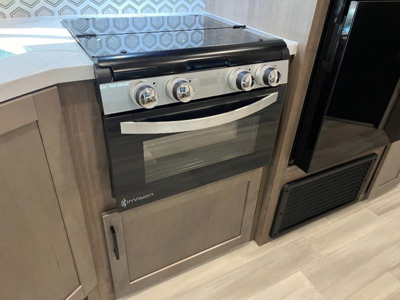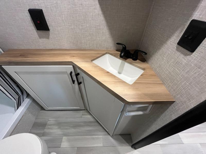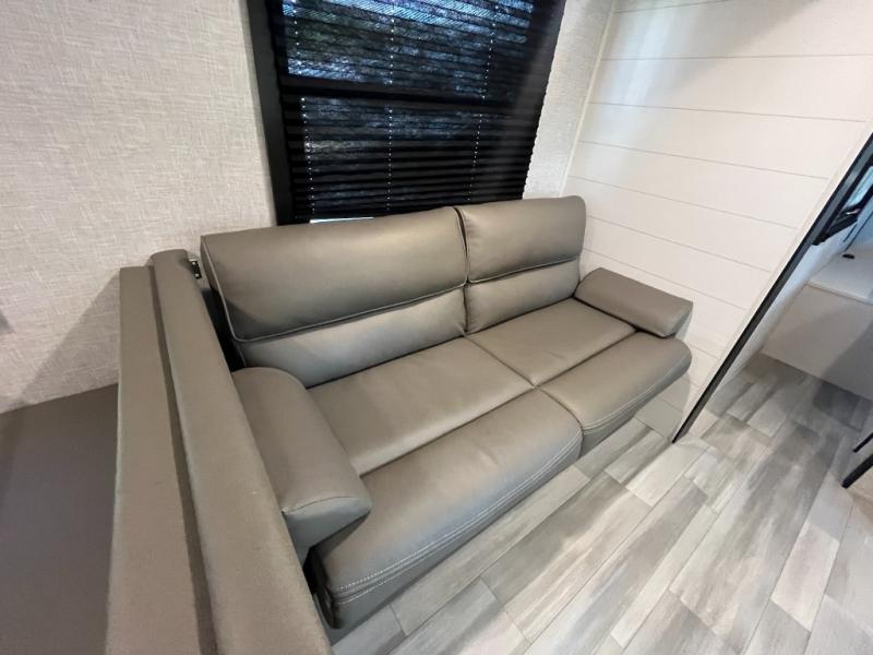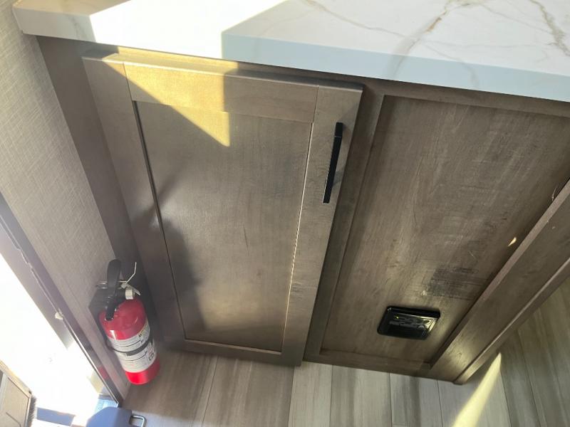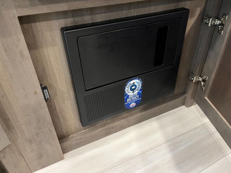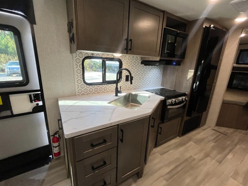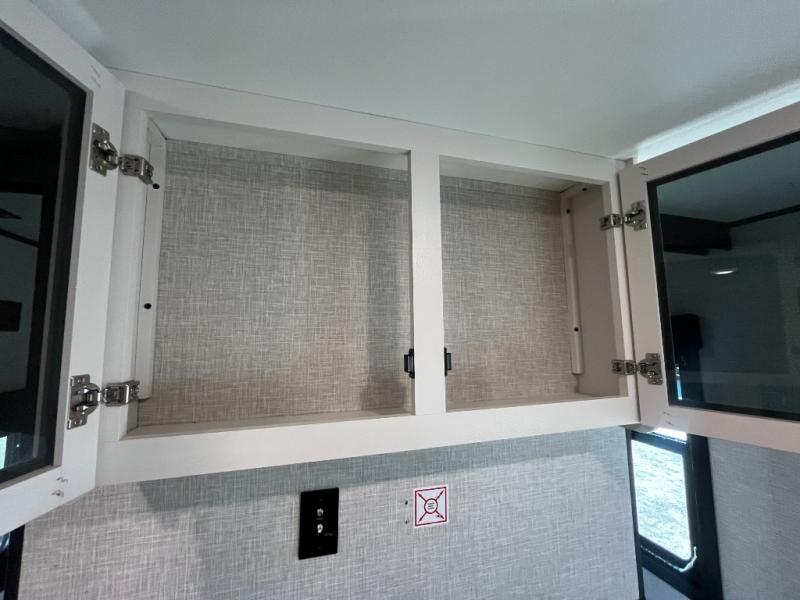 Enjoy camping at local RV spots or even national parks in this dual axle trailer that offers a large slide with a jackknife sofa and booth dinette for more sleeping space and interior room to relax. There is a full bathroom to get cleaned up in with extra counter space for toiletries, and the kitchen provides a three burner range with glass cover, a 17" oven and a pantry to hold all the goodies. You can enter the front bedroom from each side of the entertainment center giving you your own side, and there are dual wardrobes plus a shelf overhead. And don't forget about the 16' power awning with LED lighting, the exterior storage for your outdoor gear and the outside kitchen. You might even like to add a few options, take a look at the list!