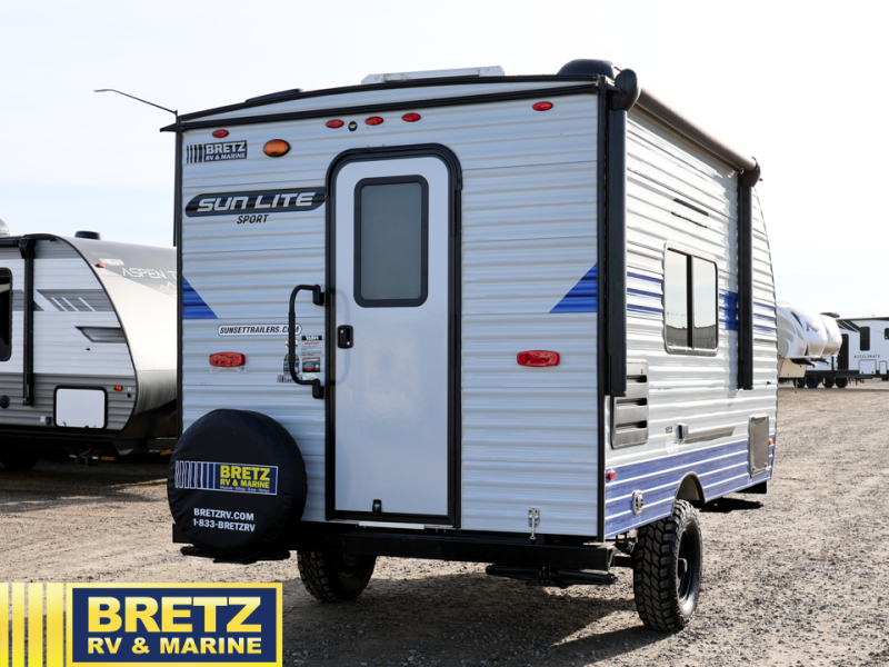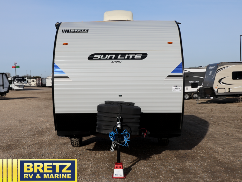 You can trust the build and enjoy your experience with any one of these Sunset Park RV Sun Lite travel trailers! Their aerodynamic profile is not only easy to haul, but also saves on fuel. They are built to withstand years of traveling even though they are lightweight with a diamond plate rock guard, a one piece PVC roof membrane, Dexter Spring-Leaf axles, and tinted safety glass windows. Some comfort standards you are sure to enjoy are the two-burner stove top range with hood, light and fan, plus the refrigerator and microwave, and an outside shower to help keep the dirt outdoors where it belongs.