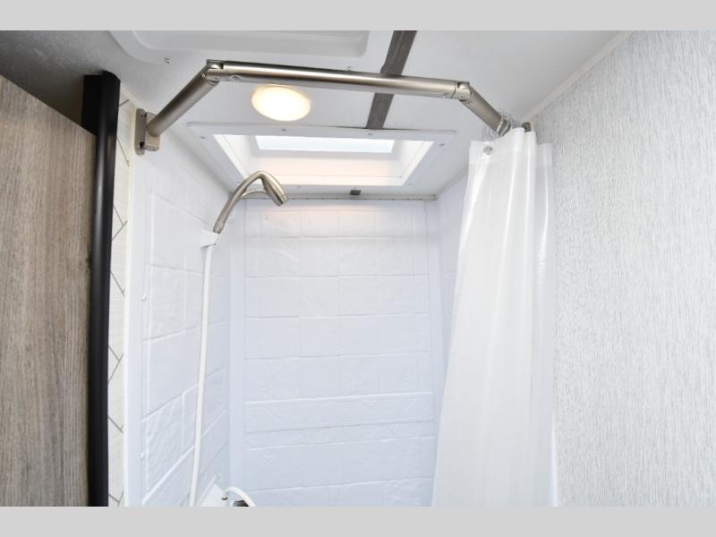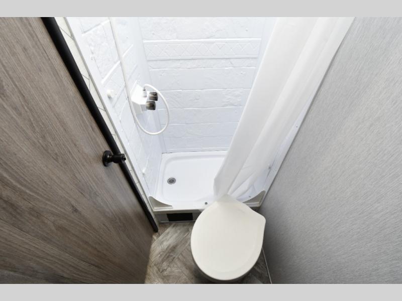 Full rear bathroom with shower and power vent