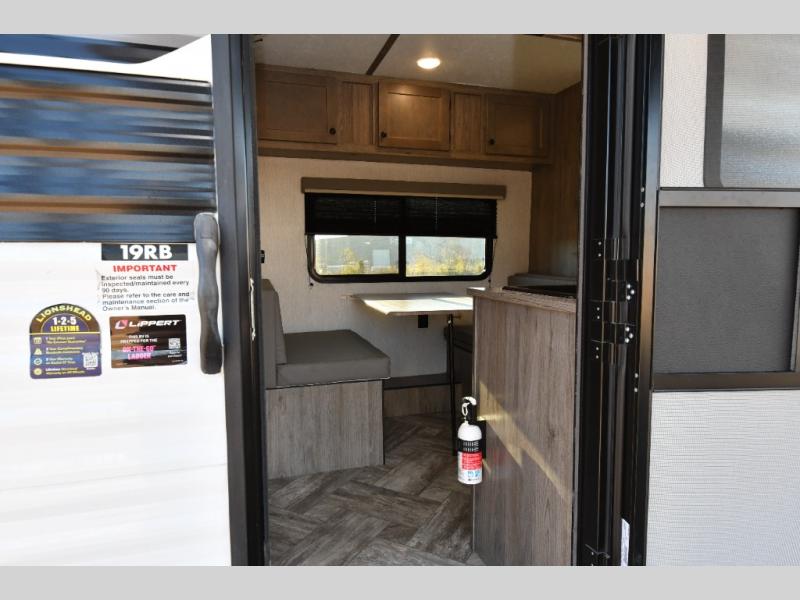 Lightweight, stylish, and designed for easy getaways — the pre-owned 2025 Sunset Park RV Sun Lite LTD 19RB is the perfect couple’s travel trailer. Weighing under 3,000 lbs, it tows effortlessly behind many SUVs and half-ton trucks, giving you the freedom to explore without limits. Inside, you’ll find a front RV queen bed with dual closets, a cozy 30” booth dinette for meals or lounging, and a full rear bathroom with a standard shower and power vent for comfort on the road.