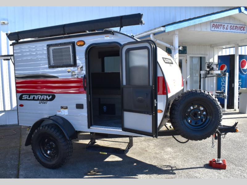 The Sunray travel trailer from Sunset Park RV is an investment that you'll be able to enjoy for many years to come! These compact trailers are effortless to tow, so you won't need fancy equipment to have fun at the campsite. The Sunray is built upon a powder-coated steel chassis, and it has a diamond plate rock guard to keep the front end protected from debris. You'll find radial tires, a spare tire with carrier where available, and .024" aluminum siding on each model. You'll be able to remain comfortable when staying indoors thanks to the A/C and furnace. Another way that your camping experience will be elevated is with the Confidence Package which comes with a 6” lift with off-road tires, black steel rims, a roof rack, and more!