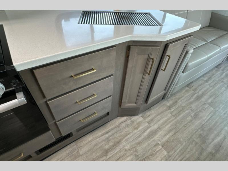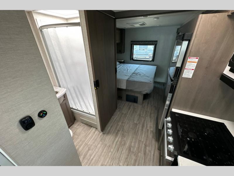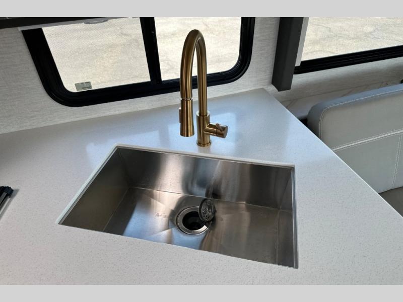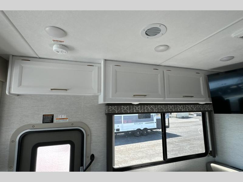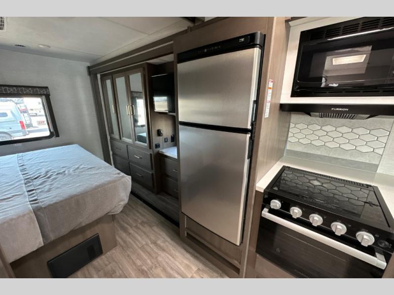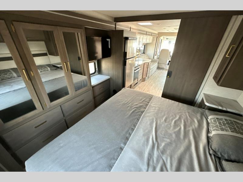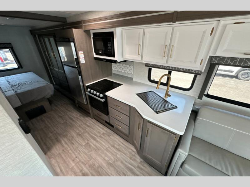 You will love how much space you have in this motorhome thanks to the full-wall slide! There is a jack-knife sofa and a Dream Dinette, or you can choose the optional theater seats in place of the sofa if you don't need the additional sleeping space. The chef of your group can prepare meals indoors on the three burner gas cooktop or in the microwave oven, plus there is an exterior kitchen with a refrigerator, a sink, and a 1000-watt inverter! The full bath will allow you to freshen up each day, and you'll feel right at home in the rear private bedroom with a king bed, a closet, plus a 32" TV!