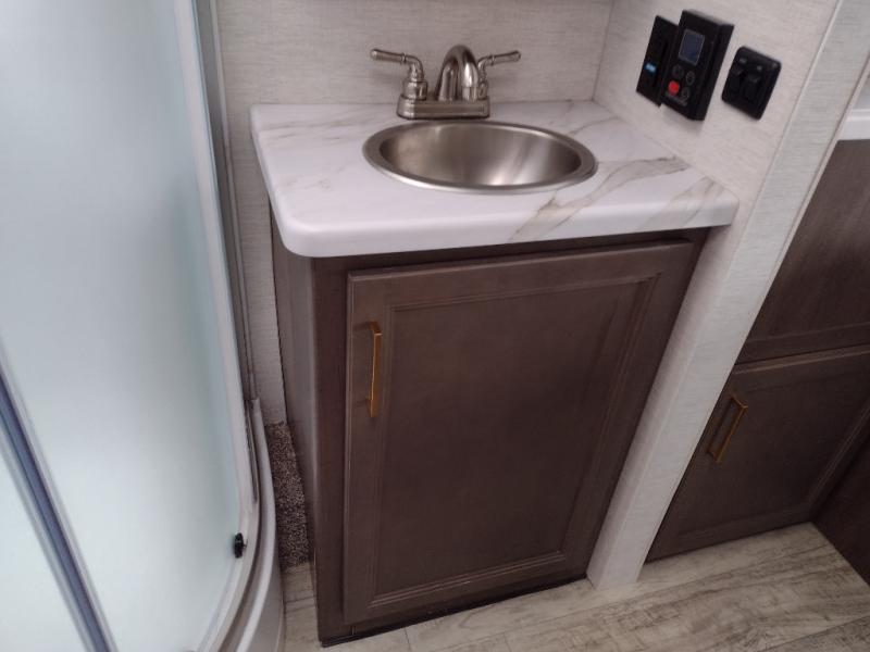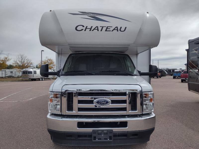 Experience a smooth ride to each destination with the Thor Motor Coach Chateau Class C gas motorhomes! There is a Ford E-Series chassis or optional Chevrolet chassis on select models, and each model includes an 8,000 lb. trailer hitch to bring the family car along. They are constructed with a welded tubular aluminum roof, sidewall cage construction, vacu-bond laminated roof, walls, and floor with block foam insulation to keep the heat and air conditioning inside. The slick fiberglass exterior with graphics package and black framed windows are sure to turn heads down the highway too. Inside, you'll be met with residential vinyl flooring, window privacy shades on select models, a power bath vent, and pressed laminate kitchen countertops. There is even a tankless water heater for endless hot showers, a 4.0 kw gas generator to keep you going, and solar prep for off-grid capabilities!
