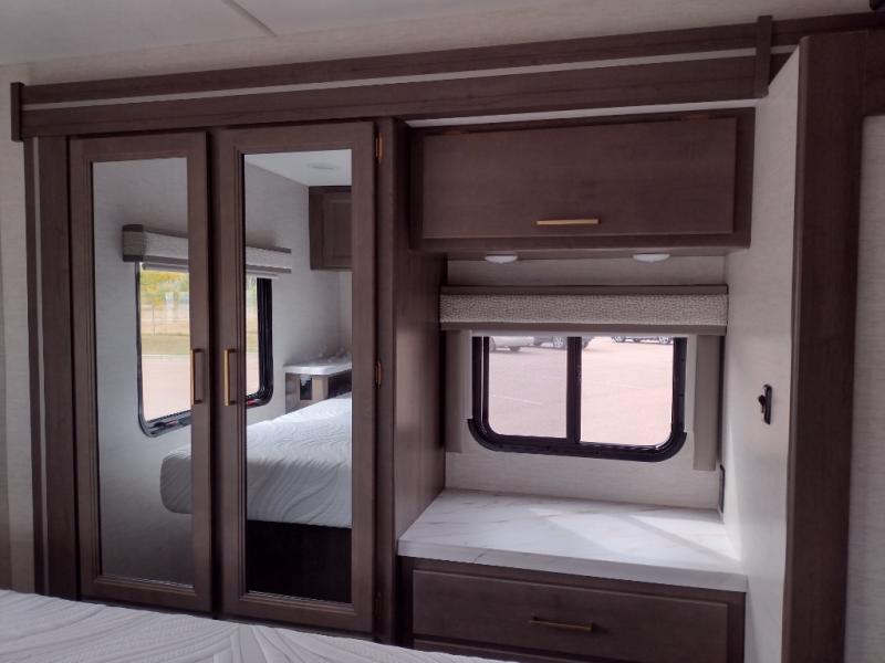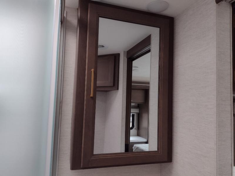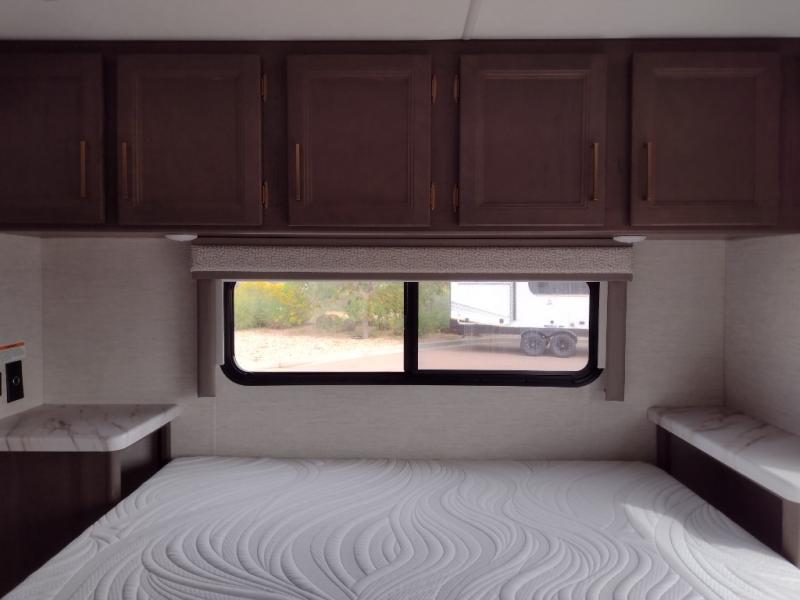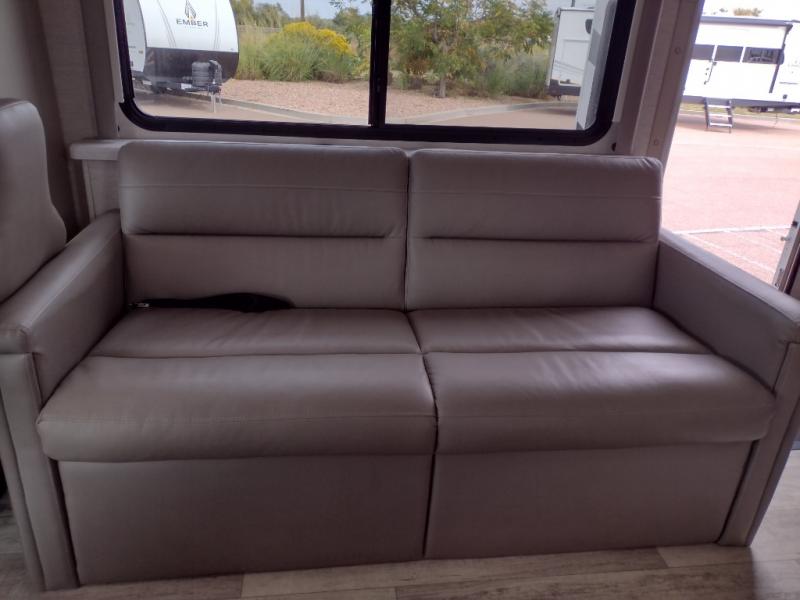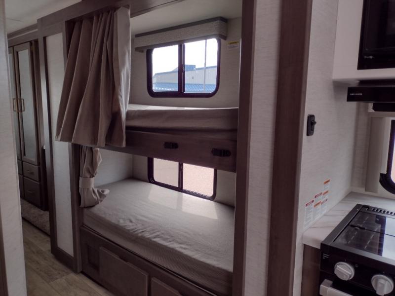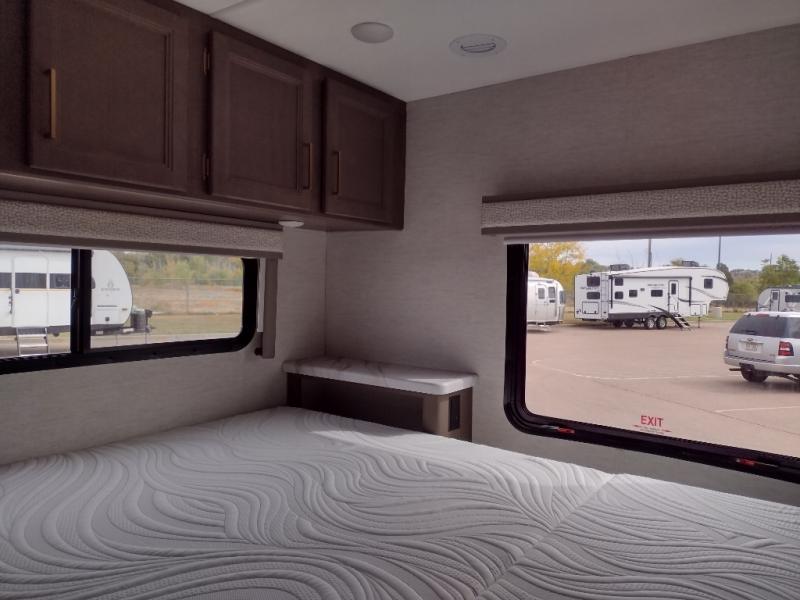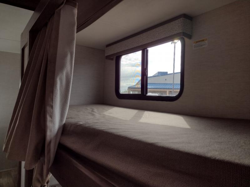 Bring the whole family with you in this motorhome! The grandkids can sleep on the set of 27" x 72" bunk beds, and you can sleep on the 60" x 75" queen bed in the rear private bedroom which also has a closet and dresser for your clothes and TV prep for entertainment. Plus, you can access the dual entry bathroom directly from the bedroom or the hallway next to the bunk beds. Relax in true comfort on the 68" jackknife sofa while you watch a movie on the 40" TV or play a few card games at the 71" Dream Dinette. There is also a 52" x 96" bunk over cab for even more sleeping space!