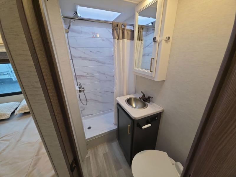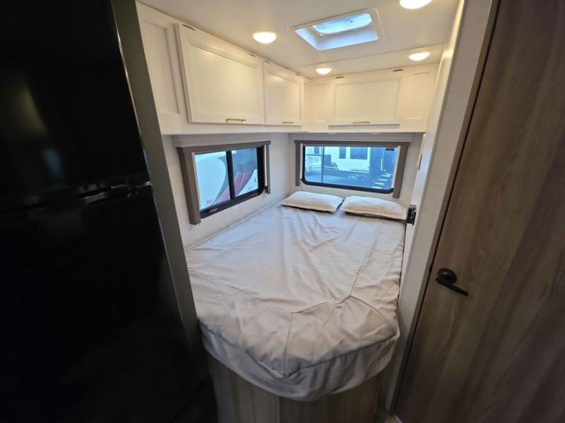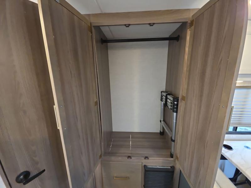 Easily head out for fun at a state park, the lake or your friend's ranch. This coach is easy to maneuver on the road or in town thanks to its compact size, yet has so many conveniences, you might not return home. The front cab over bunk is a perfect sleeping space for guests, the 39" Smart TV allows you to watch shows when you want some inside time, and the dream dinette gives you a place to dine and relax. The cook will love all the kitchen amenities at their fingertips, plus the flip-up countertop extension is super handy. The rear corner bedroom offers a queen bed slide for more floor space, a privacy curtain and a closet, plus the full bathroom is a few steps away.