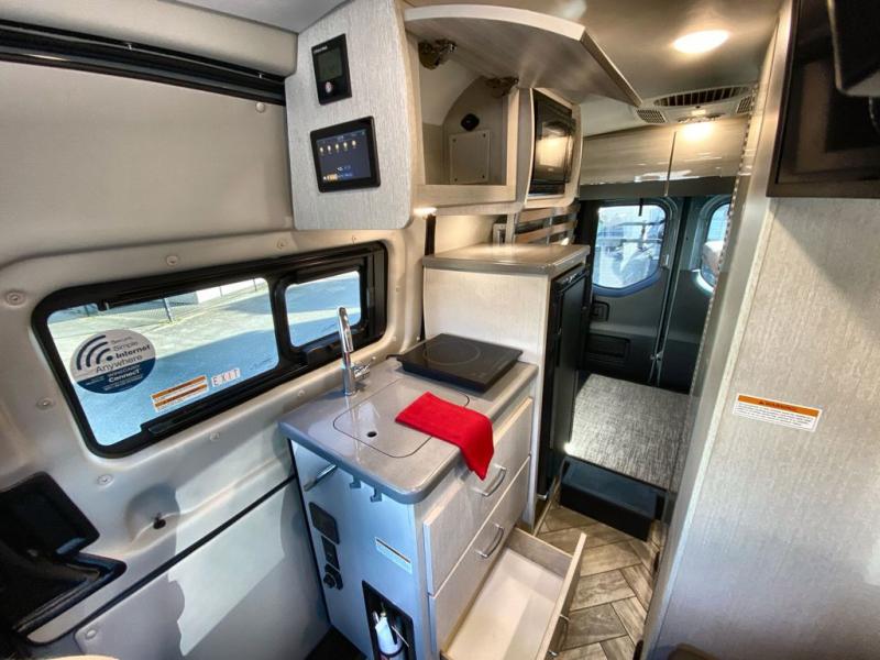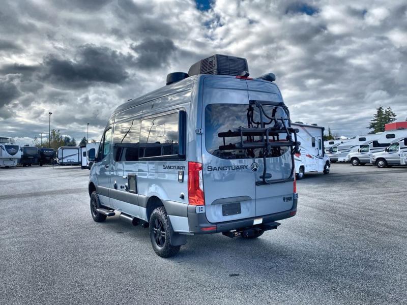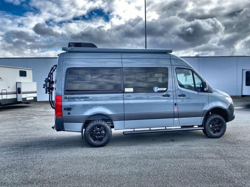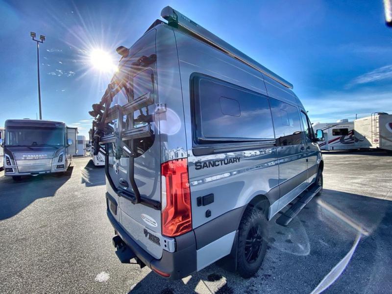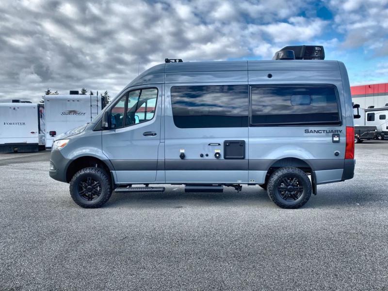 With any Sanctuary Class B diesel motorhome, you can explore off-grid thanks to the solar charging system which includes a 200-watt solar panel and charge controller to keep your house batteries full without overcharging. The Winegard ConnecT 2.0 works as your WiFi extender, 4G hotspot, and TV antenna in case you need to stay connected, plus each model is HS/DDS satellite and cable TV ready if you want to add entertainment. Each is built on a Mercedes Sprinter 2500 or 3500 all-wheel drive chassis, depending on the model you chose, and you'll appreciate the 5,000 lb. trailer hitch for your towing needs. Inside, you'll enjoy light weight cabinetry, cassette shades, black out window coverings, and Euro-style upper cabinet doors for a more modern look.