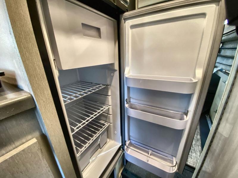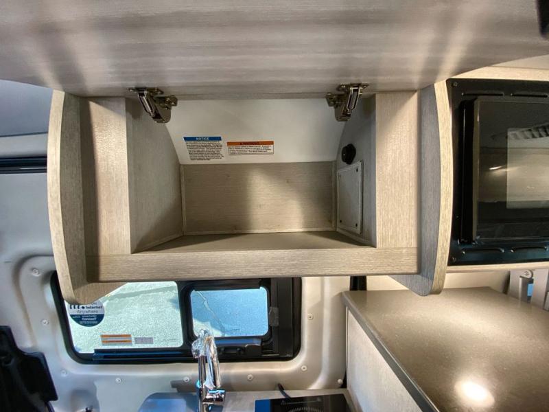 You'll love just about everything in this capable coach for two! Once you wake up on the 51" x 74 bed, you can freshen up in the wet bath that includes a cassette toilet, a deluxe curtain, and a power bath vent with a wall switch to keep everything fresh. There is also an underbed cargo area with a locking storage compartment to keep gear secure. Head to the kitchen to prepare breakfast on the induction cooktop and microwave oven, and the milk can go back in the single door 12V electric refrigerator. This model also includes a dinette with a removable table for dining space and a 24" Smart TV to keep you entertained!