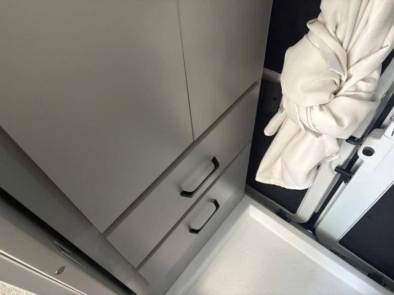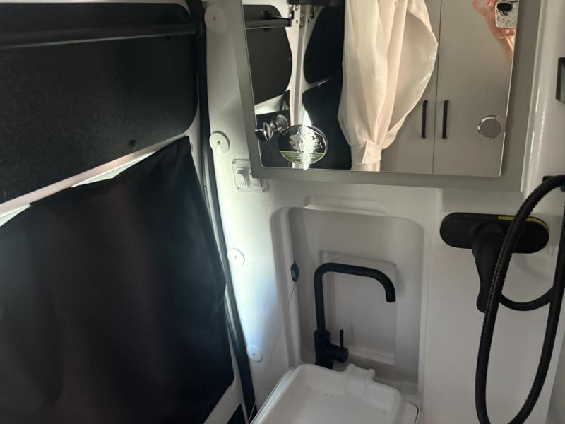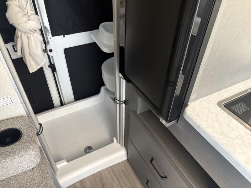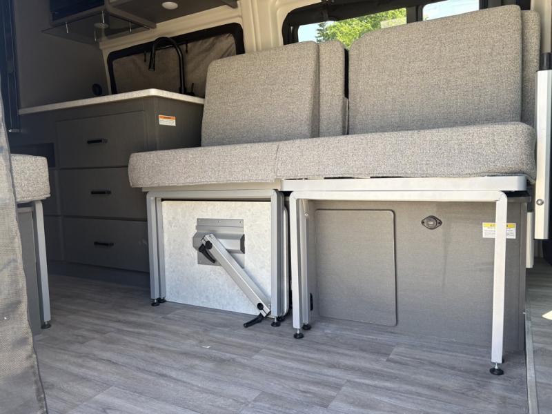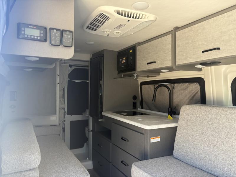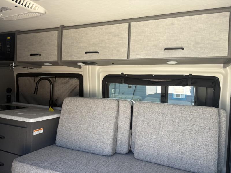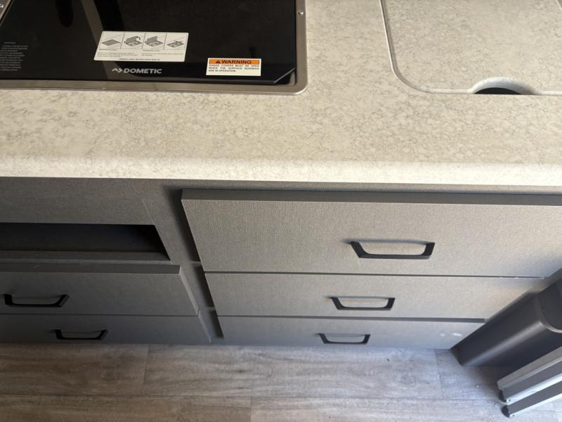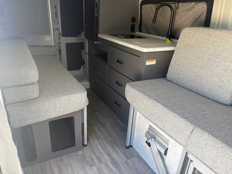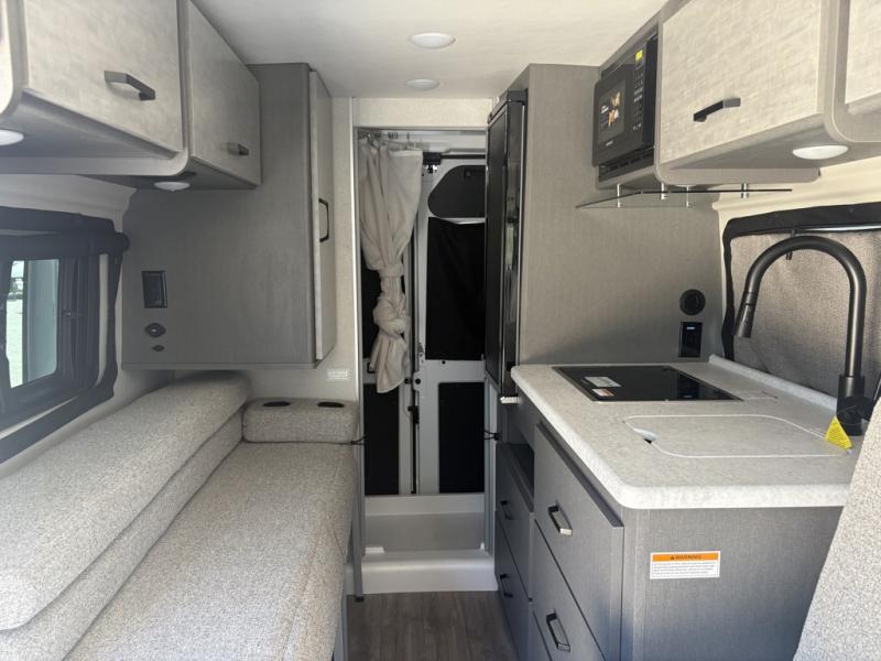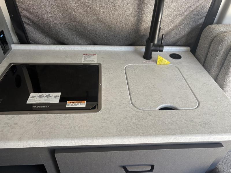 Time spent in this camper van will be time well spent! Whether you're relaxing on the tri-pullout sofa that converts to an RV queen-size bed/sleeping space or the pull-out bench, you're sure to find a comfy spot. There are two locations for the portable table for dining, and the optional Thule awning can be added if you enjoy spending more time outdoors. This Twist kitchen includes a two burner gas cooktop and a microwave oven to cook meals, plus a single door 12V refrigerator for food storage. When you need to freshen up, the rear wet bath will keep you squeaky clean, and there is even a wardrobe and drawers here for your belongings!