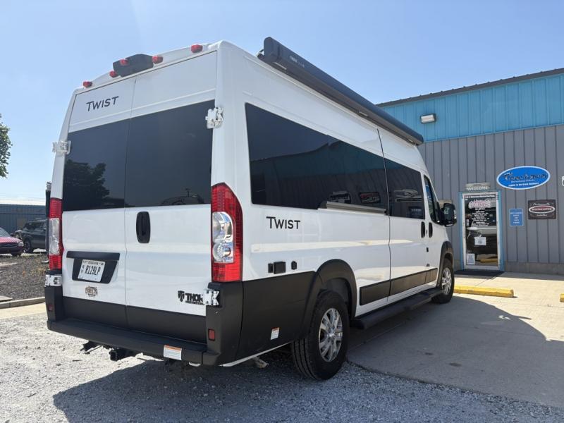 Plenty of amenities are packed into the Thor Motor Coach Twist Class B motorhome. Built on the RAM ProMaster® 3500XT gas window van chassis, these come with a 3,500 lb trailer hitch, an Onan® RV QG 2800 gas generator, and a Truma® Combi Eco Hydronic furnace and water heating system. You'll have a convenient control center in the Rapid Camp+® Multiplex wiring control system, which allows you to operate features like lights, generator, HVAC, and more. You will feel right at home with residential vinyl flooring, Welformed interior wall panels, plus pressed countertops with an undermount sink and sink covers to name a few interior comforts!