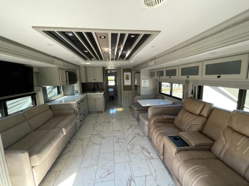 Inside the 2025 Allegro Bay 38 AB, travelers will find a refined interior designed for comfort during extended stays. The spacious layout offers ample room to relax, entertain, and recharge between adventures.