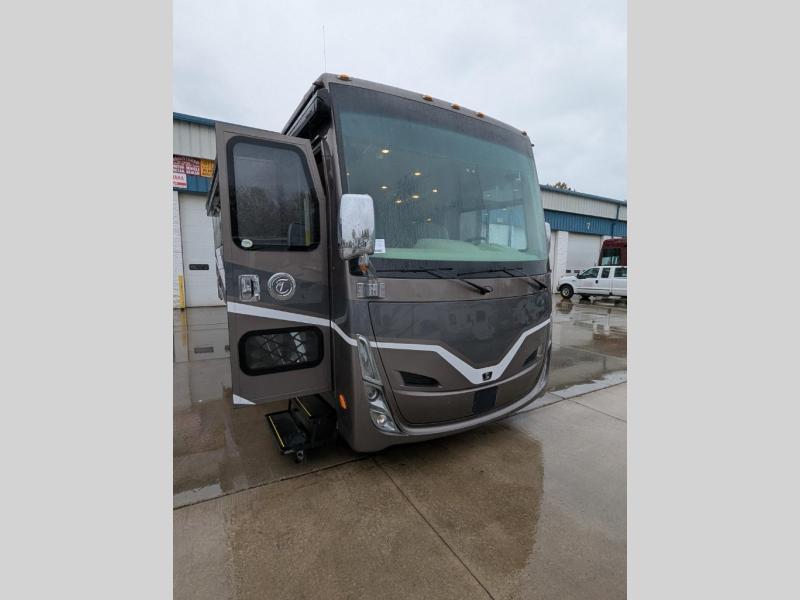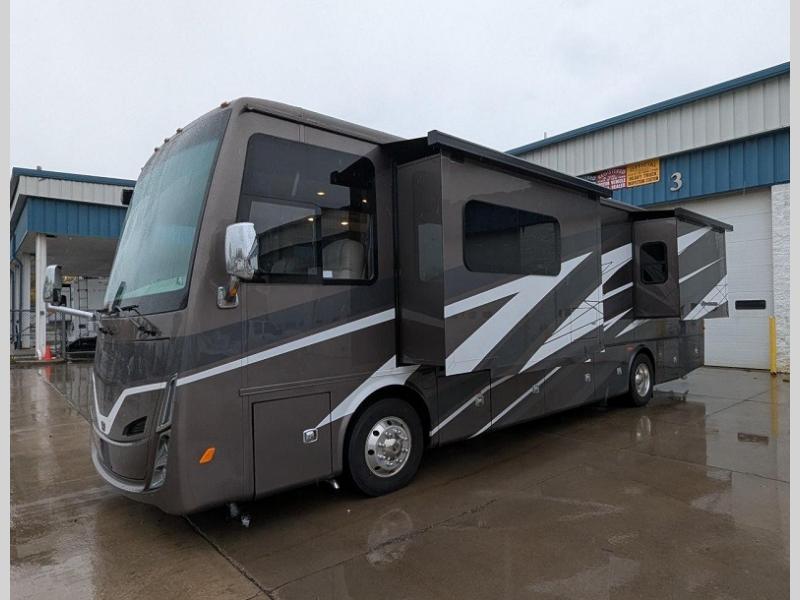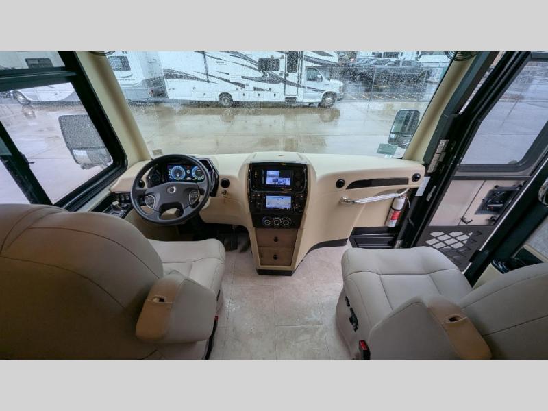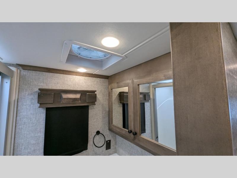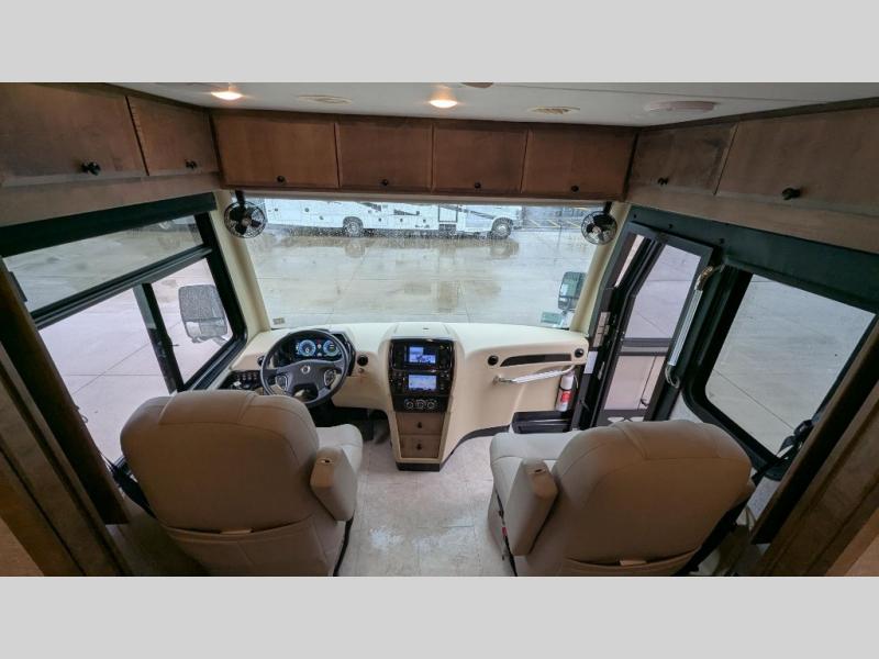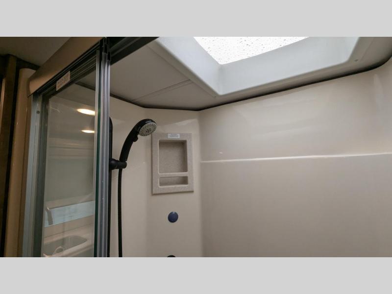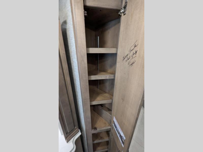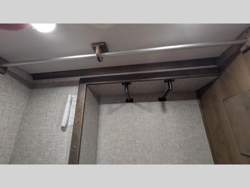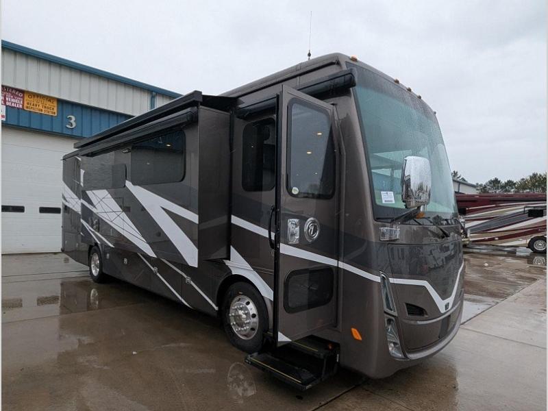 Pack your bags and load up into this motorhome for a luxurious adventure! The rear private bedroom has a king bed slide that can be switched for an optional queen bed, a bank of drawers next to a TV, a large closet, and a wardrobe that is prepped to add an optional washer and dryer so you can have clean clothes throughout your entire trip. The full bathroom has a shower skylight, gravity flush toilet, solid surface countertop, and a handheld shower head with a slide bar for added convenience. When you're ready to eat, just whip up a meal on the three burner propane cooktop or use the convection microwave. You can dine at the booth dinette, or maybe switch out the dinette for an optional dinette computer workstation with a lift TV! You can spend your evenings with a movie since there is a living area TV with an optional fireplace, or you can head outdoor to enjoy the exterior TV and Girard power awning with LED lights!