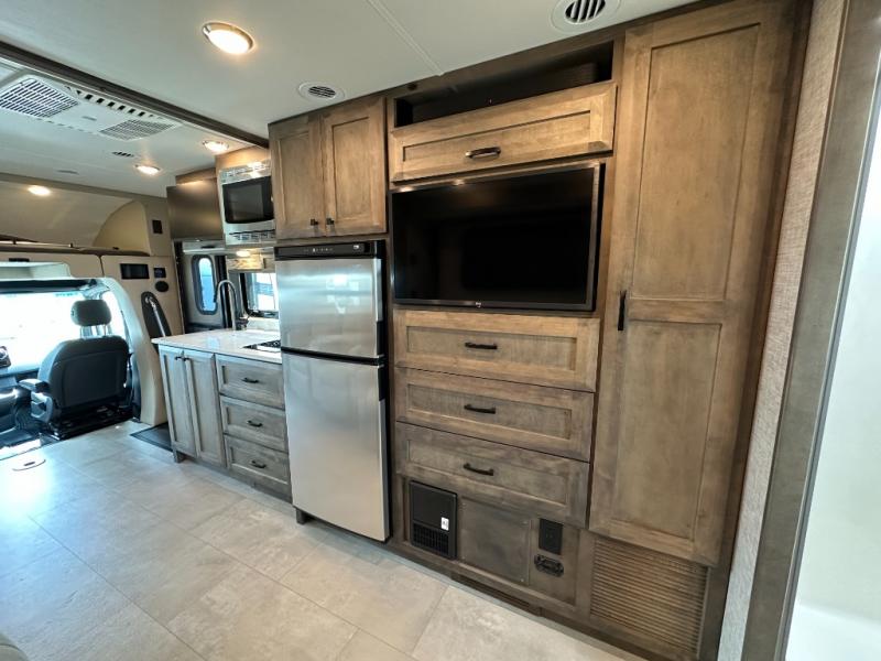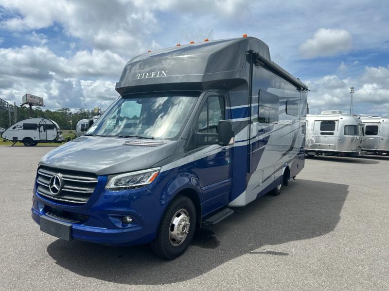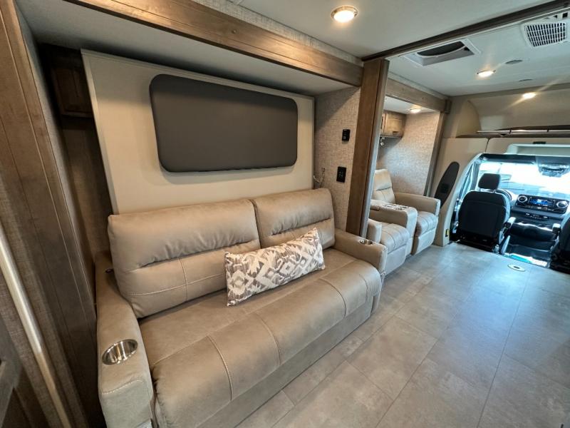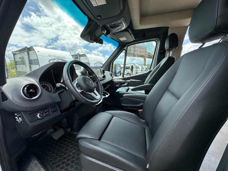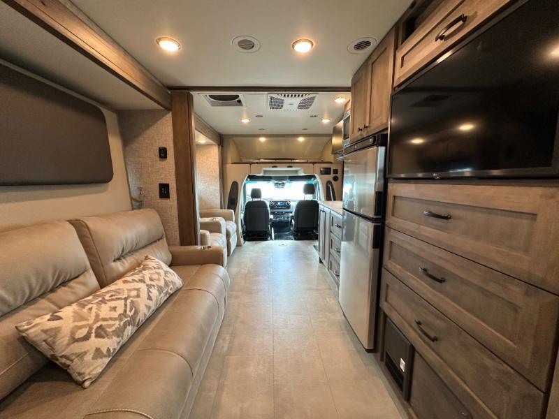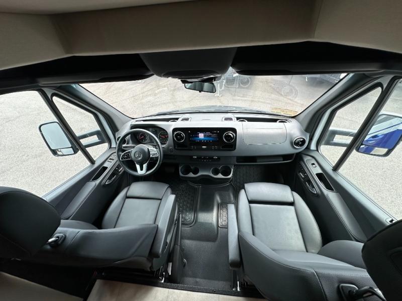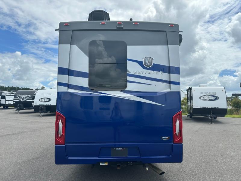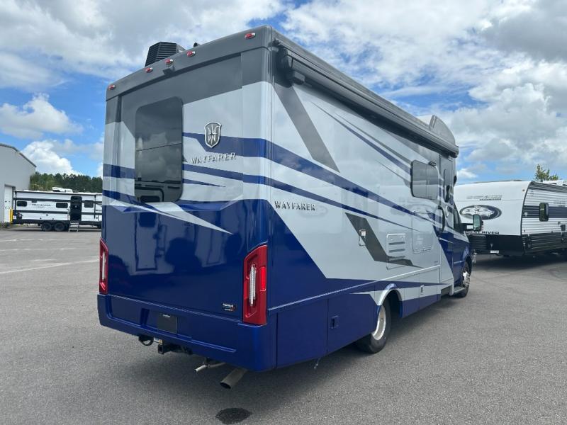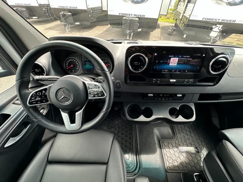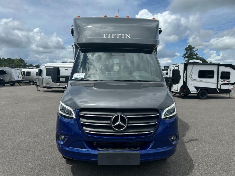 With any Wayfarer Class C diesel coach by Tiffin Motorhomes you will enjoy luxury features both inside and out. There are one-piece molded gel-coat fiberglass front and rear caps plus full-body paint and two layers of clear coat for added protection. The Mercedes-Benz 3500XD dual wheel cutaway chassis provides a strong foundation, and the 2.0L V4 turbo diesel high output 211 HP diesel engine with 332 lb-ft torque will keep you going adventure after adventure! You will love the drive just as much as the destination with black leather adjustable captain's seats that are also heated, intelligent navigation, and a Mercedes-Benz MBUX multimedia system with a 10.25" touchscreen. Wherever you decide to roam, you will be met with interior comforts that include handcrafted overhead cabinetry, solar and privacy shades, solid surface galley countertops and task lighting, and a wardrobe in the bedroom to keep your space tidy. New features include matte black cabinet hardware and bathroom accessories, a 9-speed shiftable automatic transmission, a standard 4,000 kW RVMP flex power LP generator, and more!
