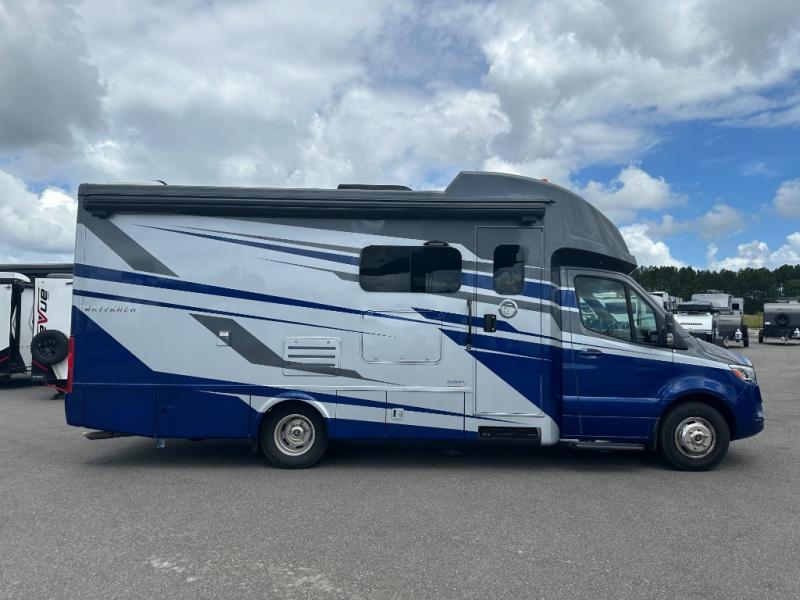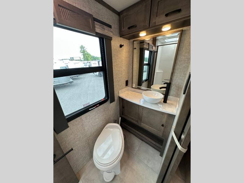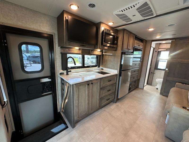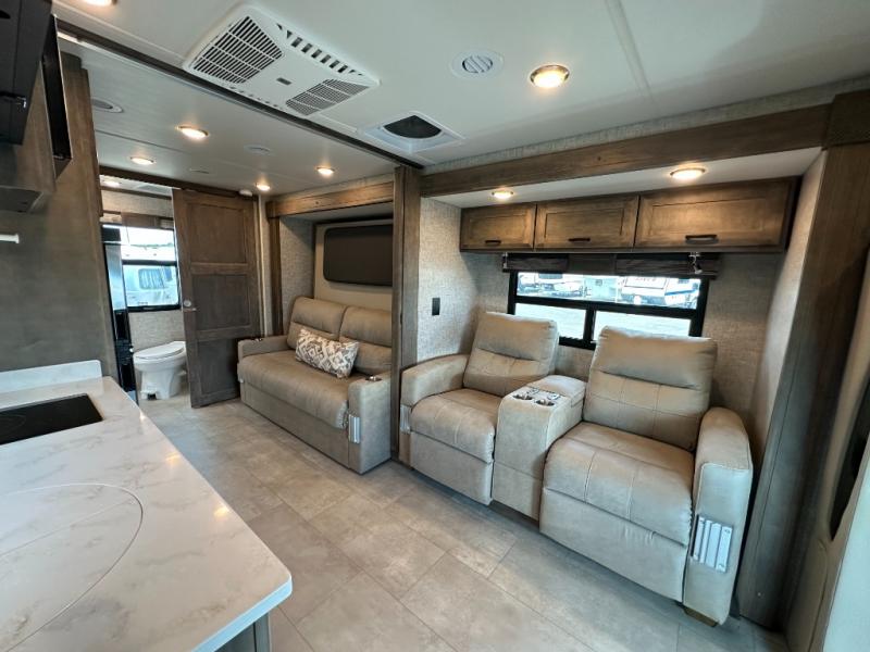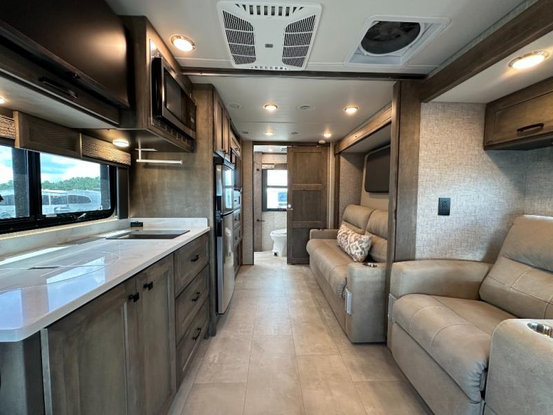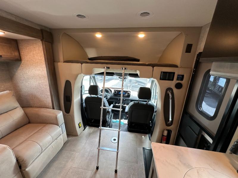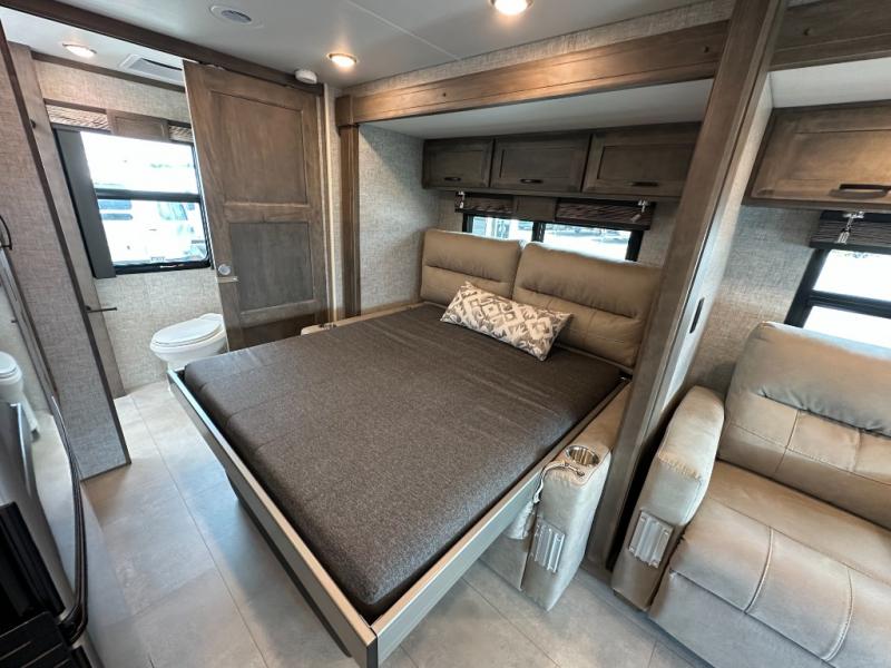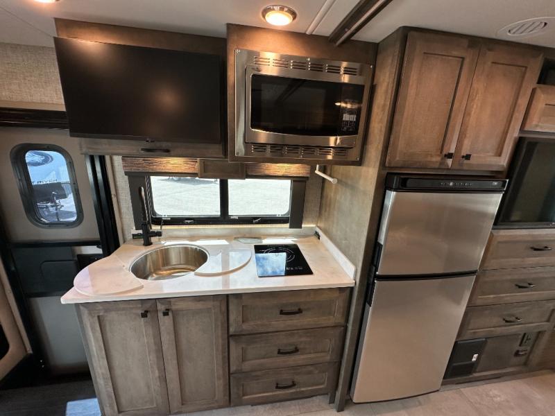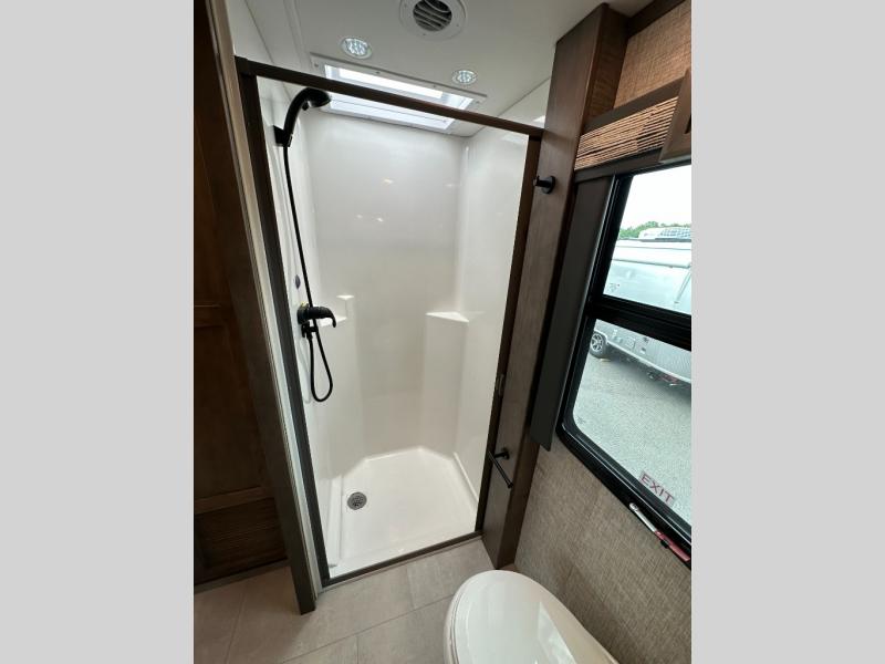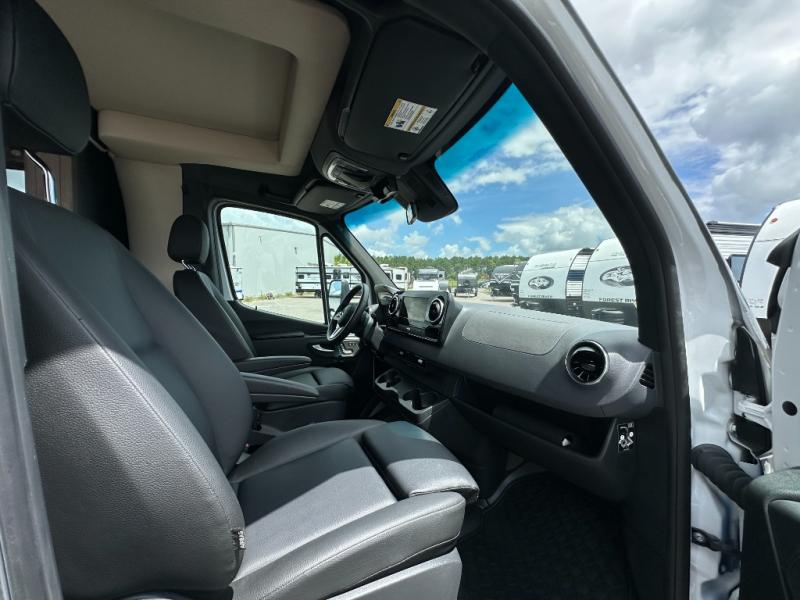 With any Wayfarer Class C diesel coach by Tiffin Motorhomes you will enjoy luxury features both inside and out. There are one-piece molded gel-coat fiberglass front and rear caps plus full-body paint and two layers of clear coat for added protection. The Mercedes-Benz 3500XD dual wheel cutaway chassis provides a strong foundation, and the 2.0L V4 turbo diesel high output 211 HP diesel engine with 332 lb-ft torque will keep you going adventure after adventure! You will love the drive just as much as the destination with black leather adjustable captain's seats that are also heated, intelligent navigation, and a Mercedes-Benz MBUX multimedia system with a 10.25" touchscreen. Wherever you decide to roam, you will be met with interior comforts that include handcrafted overhead cabinetry, solar and privacy shades, solid surface galley countertops and task lighting, and a wardrobe in the bedroom to keep your space tidy. New features include matte black cabinet hardware and bathroom accessories, a 9-speed shiftable automatic transmission, a standard 4,000 kW RVMP flex power LP generator, and more!