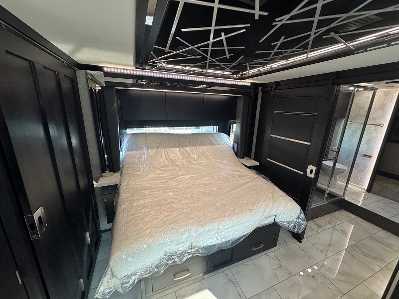 You will experience the epitome of luxury with any one of these Tiffin Motorhomes Zephyr Class A diesel motorhomes! A Cummins X15 605HP diesel engine and Allison 4000 MH 6 speed automatic transmission will power your many adventures. The 12.5 kW Onan Quiet Diesel generator will come in handy and you can store all of your outdoor necessities in the 237 cu. ft. of exterior storage space. Comfort and entertainment is as a new level with the Quartz countertops, upscale kitchen appliances, and three TV's, plus the Starlink Pro is now standard with a subscription. New features continue on with a Lippert On-The-Go exterior ladder, hot and cold water access at the front cap, new Generation 14 paint schemes, and more. You will also have your choice of chassis with either a PowerGlide rear engine diesel chassis or Freightliner PowerGlide SL raised rail rear engine diesel chassis; see dealer for more details.