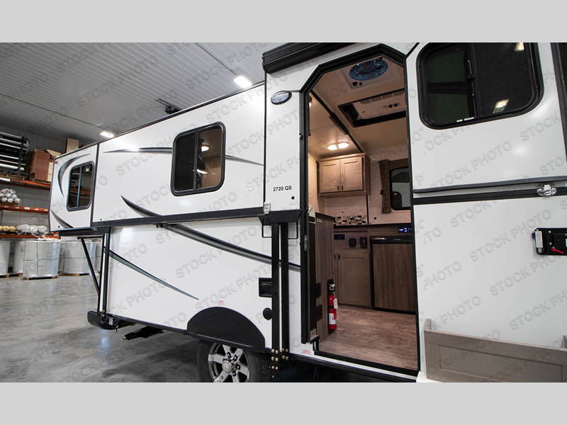 Get out there and enjoy yourself with this 2720 Series travel trailer by your side! You'll have a front power slide so that the interior will have more living space, and the sofa bed will not only provide seating for you and your friends, but it will also provide sleeping space at night. The rear queen-size bed will allow you to sleep comfortably, and the privacy curtain will separate this space from the rest of the interior.