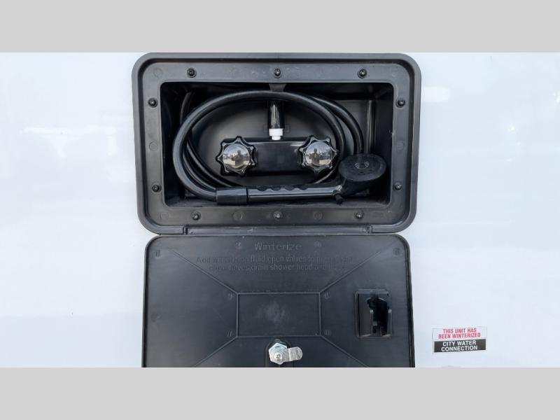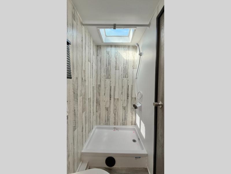 Light Weight 2602 lbs. Dry Weight, 6ft Interior Height, 200W Solar Panel, On Demand Water Heater, Outside Shower, Full Rear Bath and Front Queen Bed