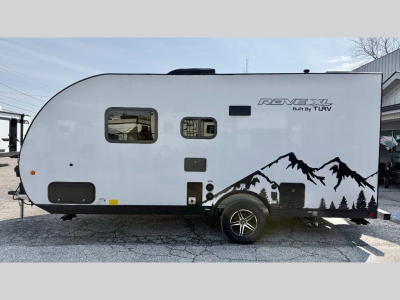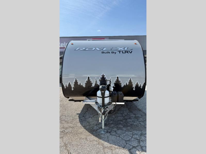 The Rove XL travel trailers by Travel Lite are ready for adventure when you are! Their two toned Hydro-Lite exterior, laminated floor construction, and aluminum roof structure make them durable and easy to tow. You will love the spacious interiors that allow you to relax comfortably and store your belongings. The 18K BTU furnace and A/C unit will keep you comfortable in spring or fall and the detachable 30 Amp power cord plus 200 watt solar panels will provide your power needs. Optional equipment that can be added include a 12' electric side awning, electric tongue jack, stereo with indoor/outdoor speakers, and more!