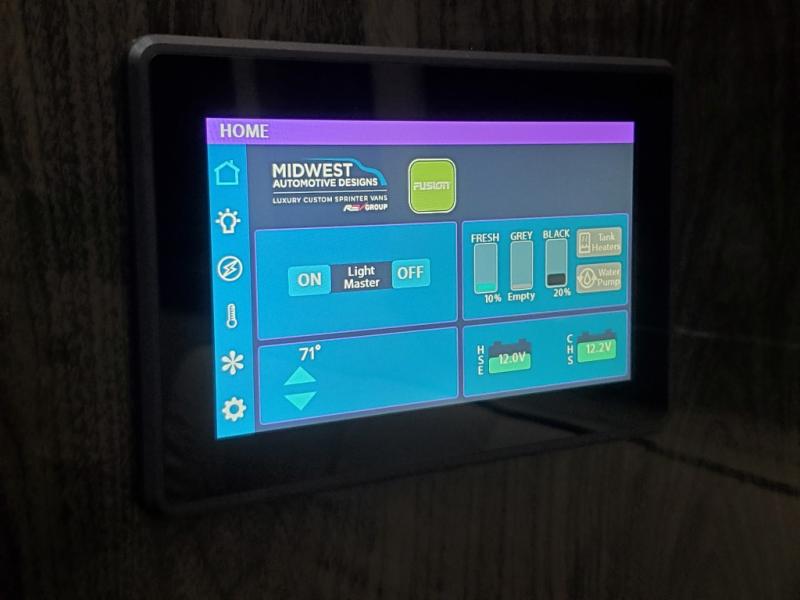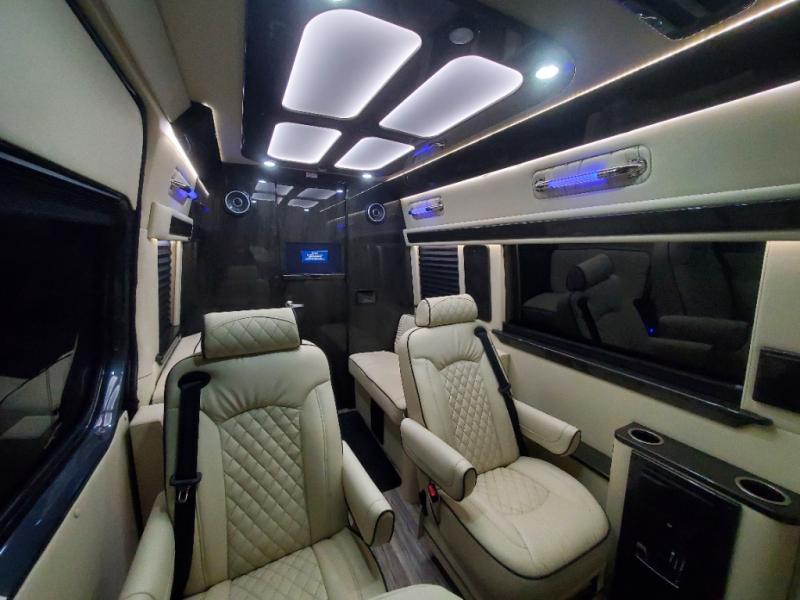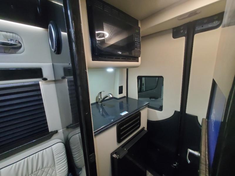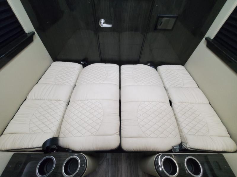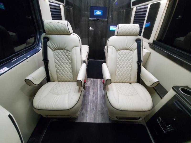 You will be the envy of everyone on the road in this Ultimate Cruiser class B diesel! A versatile layout allows up to eight people to travel in style. Four captain's chairs include a pair of swivel and slide seats in the second row, and further back are a pair of folding sofas. You will have everything you need with the rear bath which includes a flushing toilet and a sink with running water, plus a kitchen area with refrigerator and microwave. There's plenty of entertainment available including a custom audio/video system with a wireless headphone system. A 32" 4K UHD Smart TV is in the rear, plus an additional HD LED TV in the door lets your passengers watch multiple shows at once.