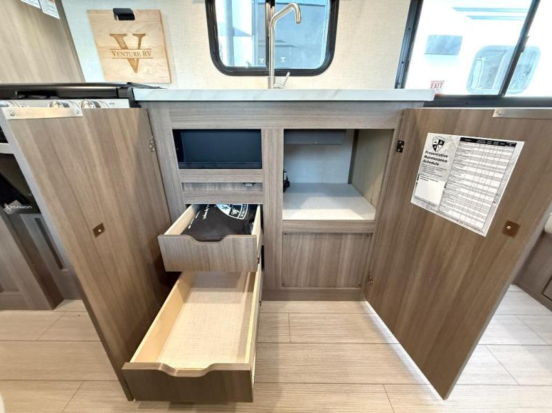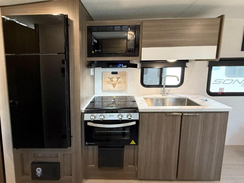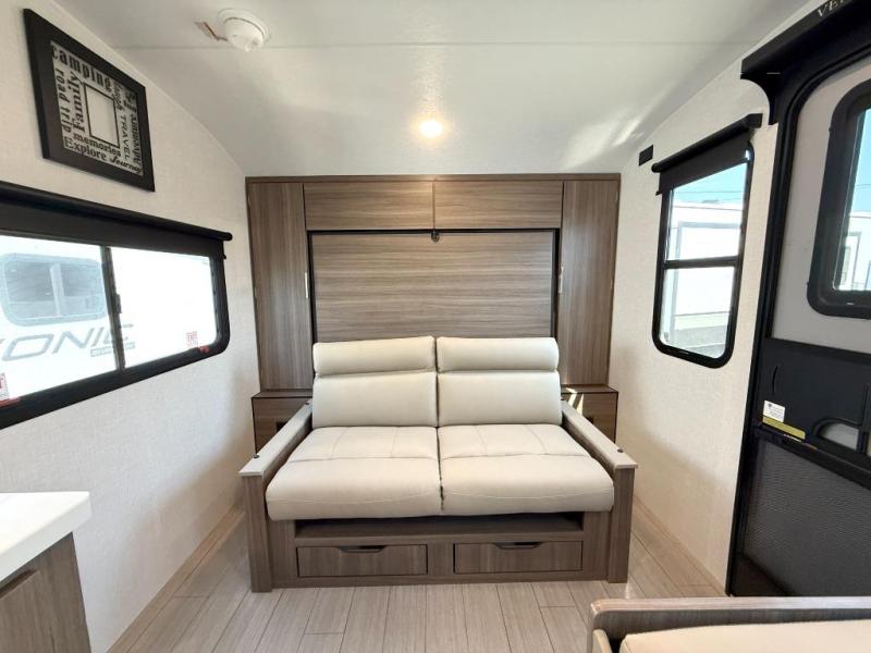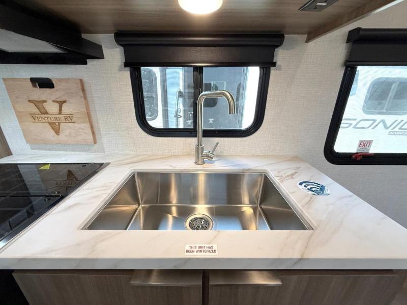 With any Sonic travel trailer by Venture RV, you begin with Next Generation in RV frame technology with the NXG Huck-bolt frame, AZDEL Onboard composite panels, tongue and groove plywood floor decking, radiant foil bubble insulation-wrapped tanks, 360-degree residential fiberglass insulation and radiant foil insulation, plus a forced-air heated and enclosed underbelly which is part of the Weather-Shield package. There is a Highway Package that comes mandatory, and the Fall Package 1.6 provides a motion light in the bathroom, a dish drying sink cover, a power tongue jack, and WIFI prep to mention a few features. Get ready for comfort and style in a Sonic ultra-lightweight, tandem-axle travel trailer of your choice!