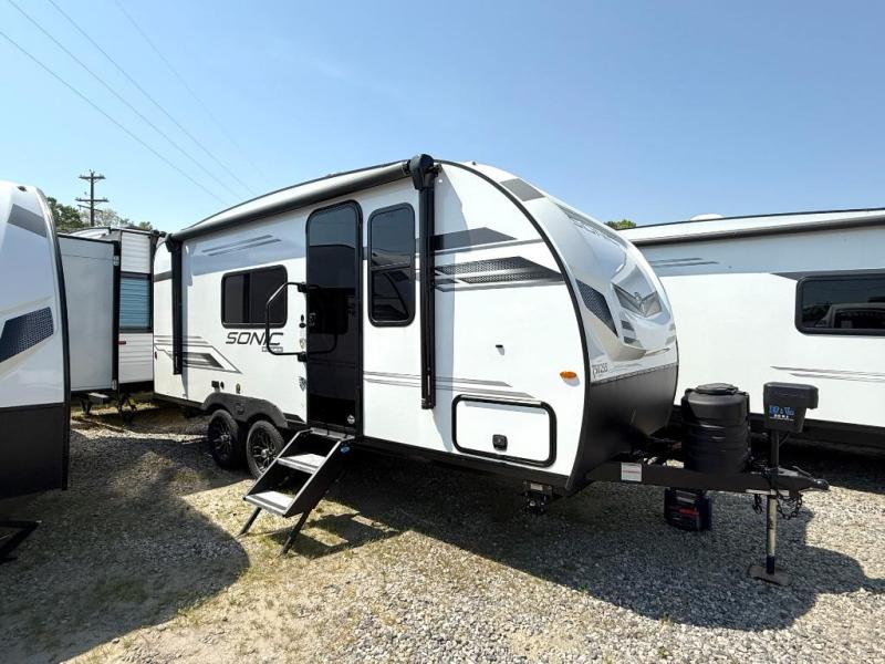 "Adventure-ready and tow-friendly, the 2025 Venture RV Sonic 190VRB delivers full-size comfort in a single-axle design—sleek, smart, and built for the road ahead."