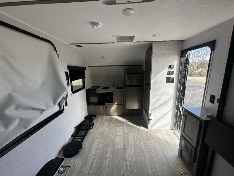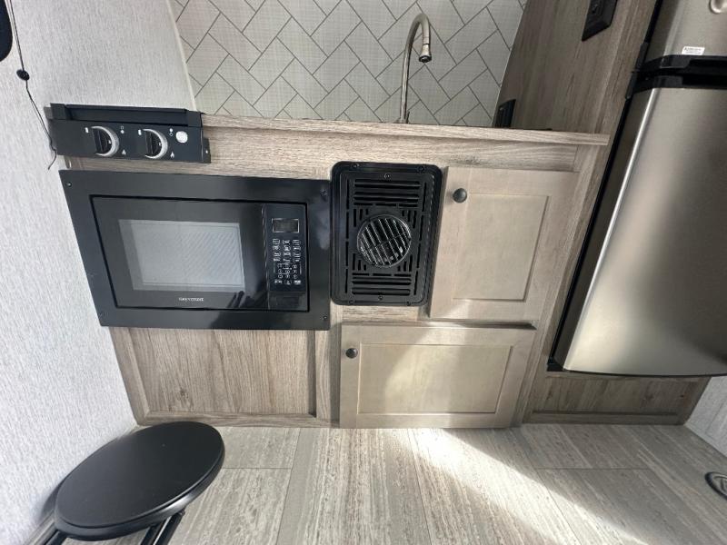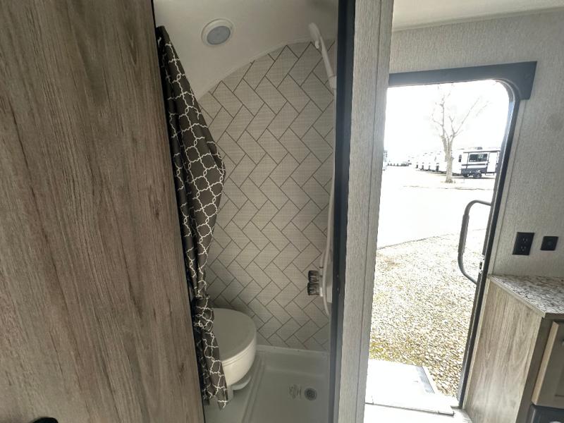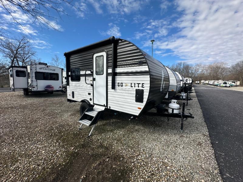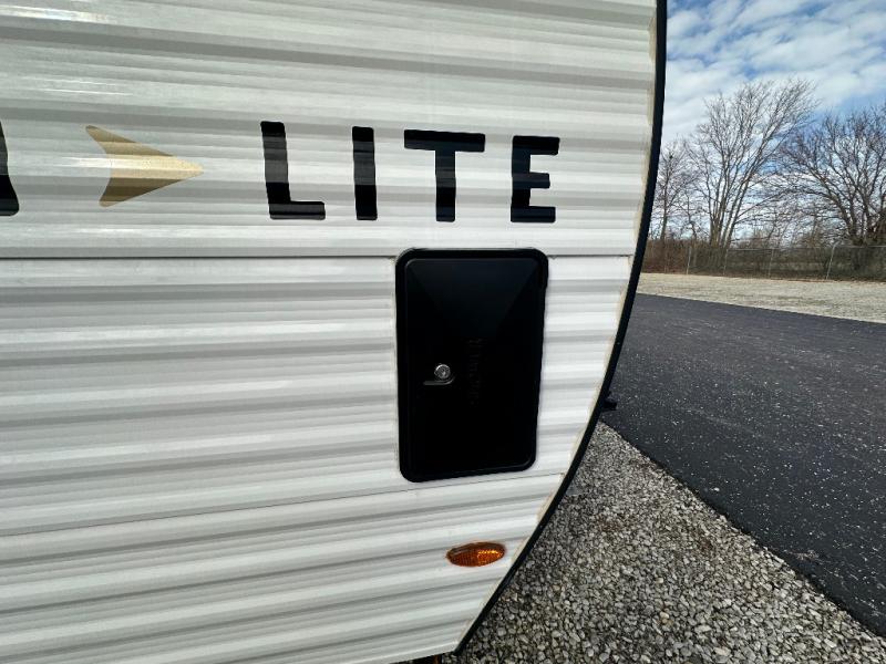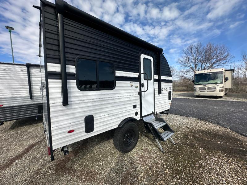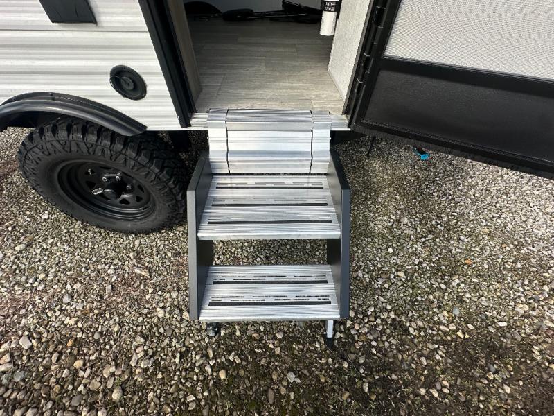 The Wayfinder Go Lite travel trailers and toy hauler provide you with lightweight towing, budget-friendly floorplans, and essential features to make each camping trip hassle-free. There is a Solid Step outside, off-road tires, and a durable walkable roof. You'll enjoy many interior comforts including bath and kitchen amenities, cozy seating and sleeping spaces, plus ample storage spaces for your camp gear and personal belongings.