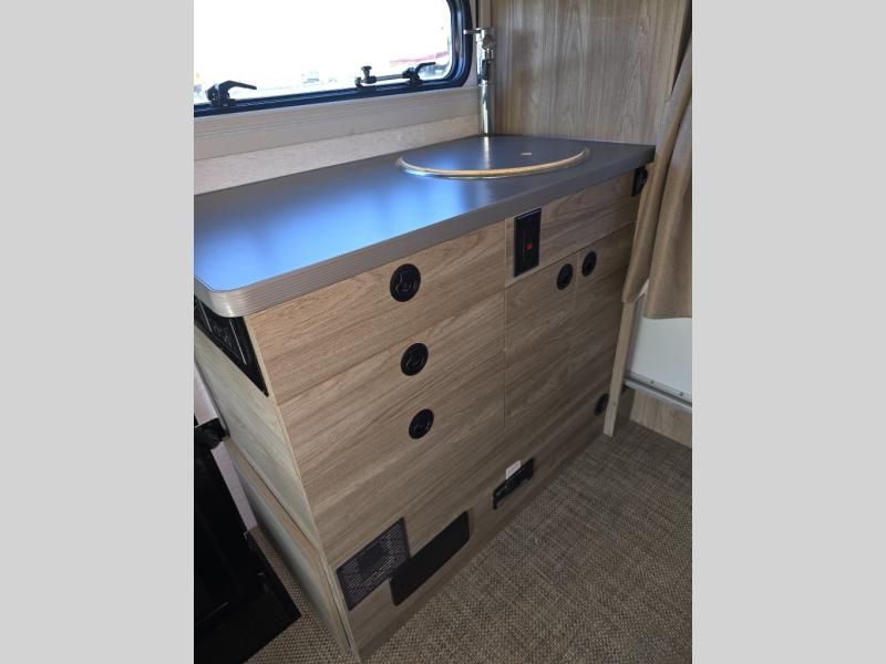 You will love the versatility found throughout this motorhome! Starting with the multifunctional lounge that can convert into four different modes. The flexible wet-dry bath has a pivoting lavatory wall, a 24" x 30" shower, an Oxygenics shower head to wash up, and even robe hooks to hang your towel afterwards. Keep your bellies full with delicious home cooked meals prepared in the versatile galley with the portable single burner induction range top, convection microwave oven, and 5.3 cu. ft. single door 12V refrigerator, plus a galley drawer/counter extension base. The heated gear garage has a L-track cargo tie down system with removable floor liner, 110V/12V charging ports and LED lighting to see clearly day or night!