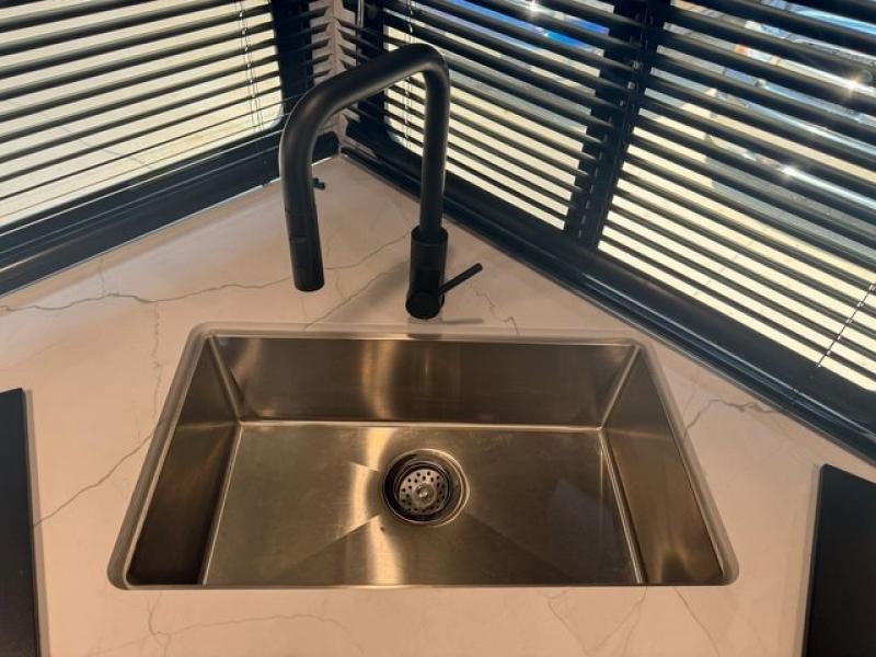 If you are looking for a rear kitchen layout, then this M-Series trailer might be perfect for you! Enter and find the kitchen right there making loading groceries a cinch with the 10 cu. ft. RV refrigerator just inside the door. There are dual windows near the corner sink which is great when washing dishes allowing you a nice view of your surroundings. A 64" jack-knife sofa slide creates more space on the interior for moving around, and also functions as additional sleeping. Opposite the sofa, you will find a 32" x 76" booth dinette. Here is where you will find overhead cabinets and an optional TV if you choose to add. A walk-through bath offers plenty of space to get cleaned up and ready for another day since it stretches across the entire width of the trailer. Each morning or night you will enjoy the convenience of a 30" x 36" shower on one side, and a toilet and corner vanity with sink opposite. The vanity counter also stretches along the curbside wall for added space for your things. A sliding space saving door leads into the front private bedroom featuring a queen bed with dual bedside wardrobes for your clothing. There is a large overhead cabinet as well. On the outside, a pass-through compartment offers easy access for all of your outdoor gear and more!