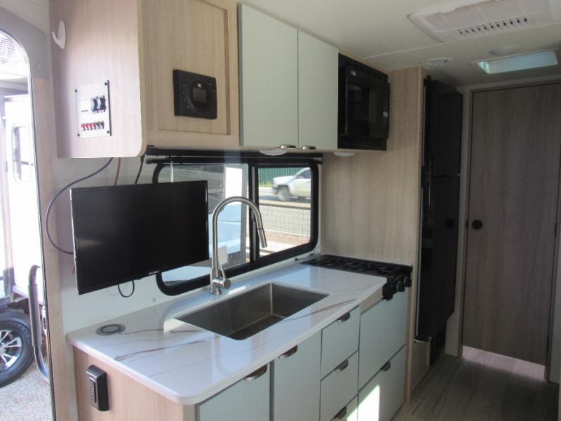 Every inch of the Winnebago Micro Minnie FLX travel trailer is worth checking out! These trailers are built with an NXG engineered frame, 1.5" thick FILON MAX fiberglass sidewalls with Azdel Onboard, plus larger off-road tires for easy towing. The FLX System includes four integrated technologies that will allow you to go off grid for up to five days without the need for a generator or external hookups. Within this system, there are two 200-watt solar panels, a 320-amp-hour Lithionics lithium-ion battery, a 3,000-watt pure sine wave inverter, plus a Truma AquaGo Comfort+ water heater and VarioHeat furnace which extends your water supply by providing instant hot water to faucets and your shower. You will love the interior with full-overlay European style cabinetry, versatile sleeping arrangements, a spacious full bath, and generous storage space for camp gear, personal belongings, and more!