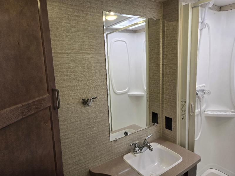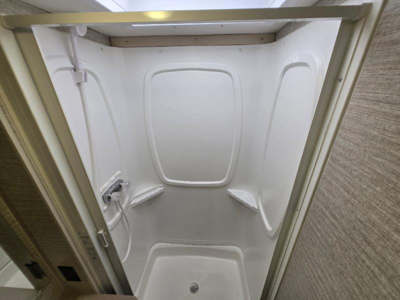 Start living your best travel life in this motorhome! After a long day of traveling, enjoy a good night's rest on the 60" x 75" bed in the rear corner bedroom which also has a nightstand, a wardrobe to keep your clothes looking nice, and a 24" HDTV for your entertainment. If you have others who wish to join you, they can sleep on the 57" x 95" bunk over cab with a TV location or even on the 45" x 74" U-shaped dinette once converted. Don't worry about eating fast food while you travel either thanks to the three burner range with glass cover and oven and the two way double door 6.3 cu. ft. refrigerator/freezer with woodgrain paneling. Freshen up after a long day of traveling in the rear corner bathroom with the 23" x 34" shower with a retractable shower door and skylight above for added headroom and natural lighting!