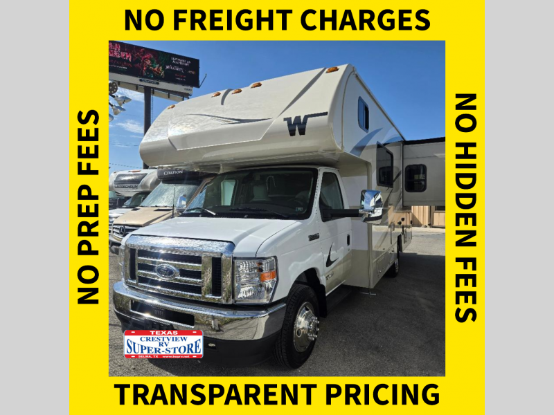 Choose your adventure with one of these Winnebago Minnie Winnie Class C gas motorhomes! The 7.3L V8 premium engine and Ford E450 chassis makes light work of long hills. Their superior craftsmanship that was designed and built for you is shown through the Smart Driver Assist technology that includes adaptive cruise control, lane departure warning, forward collision warning, and more. With flexible seating/sleeping options and a full galley with Corian solid surface countertops, everyone will stay well rested and fed. You can store all of your traveling necessities between the overhead cabinets throughout the inside and the exterior lighted large trunk storage compartment for your outdoor gear. Come find the model perfect for you today!