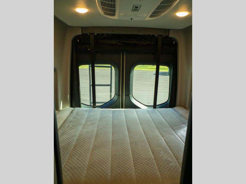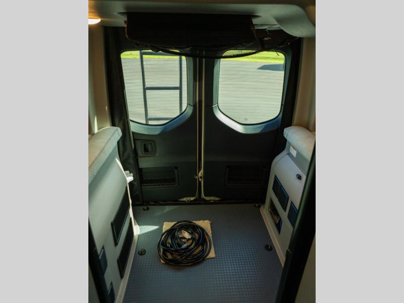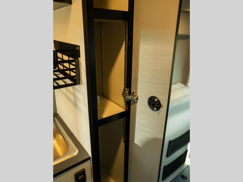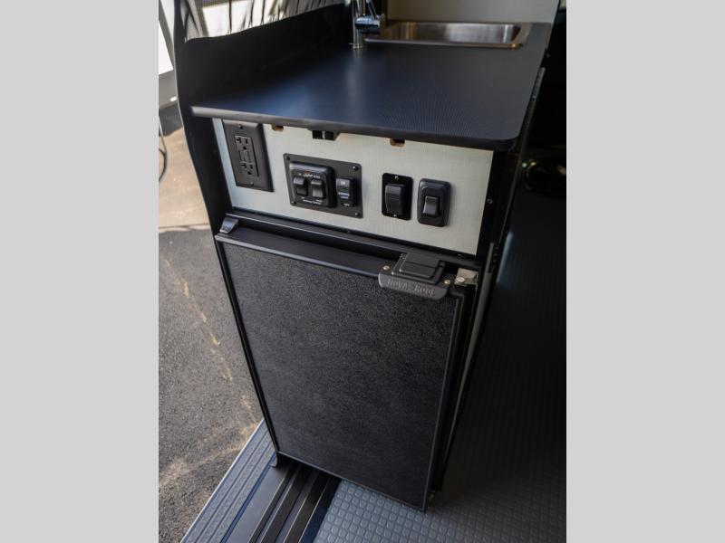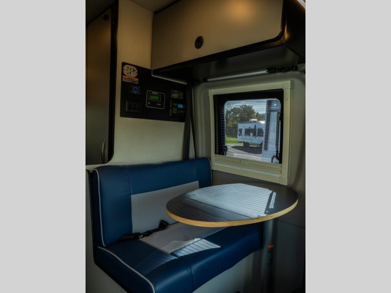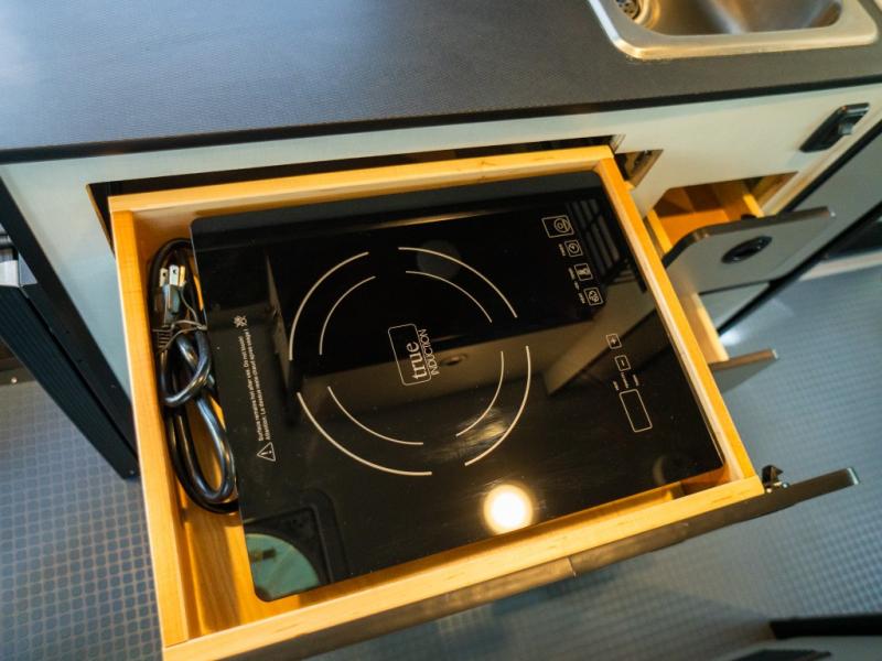 Adventure is just around the corner with this camper van! Once you arrive at your destination, you can make a quick lunch on the single induction cooktop that is stored in a drawer so you can have more counter space when you need it. The swivel cab seats and bench seat with a removable pedestal table provide a place to enjoy your meal at before you head outdoors. An all-in-one gear closet and wet bath will let you freshen up when you return, and the power lift bed with a gear garage below will provide a great night's rest. And if you're needing additional sleeping space, just choose the optional front cab air mattress!