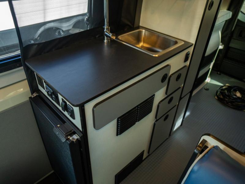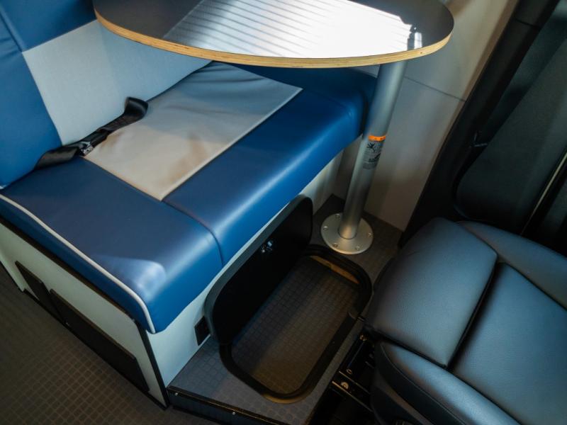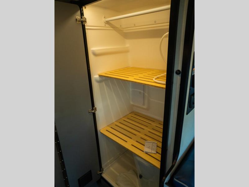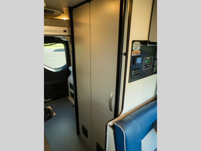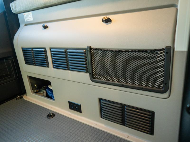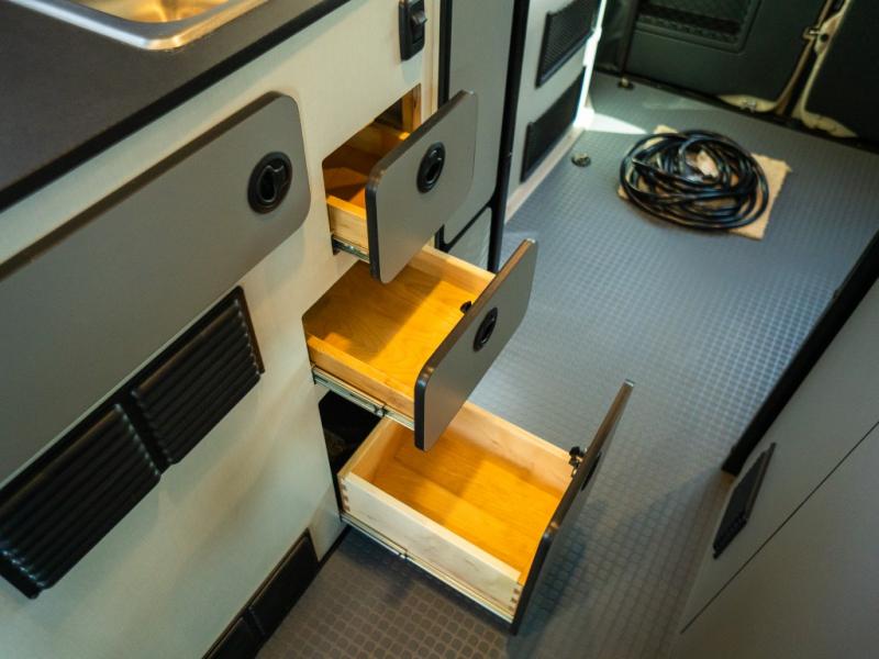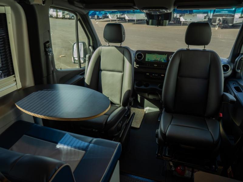 Adventure is just around the corner with this camper van! Once you arrive at your destination, you can make a quick lunch on the single induction cooktop that is stored in a drawer so you can have more counter space when you need it. The swivel cab seats and bench seat with a removable pedestal table provide a place to enjoy your meal at before you head outdoors. An all-in-one gear closet and wet bath will let you freshen up when you return, and the power lift bed with a gear garage below will provide a great night's rest. And if you're needing additional sleeping space, just choose the optional front cab air mattress!
