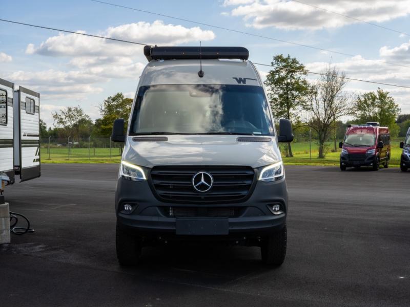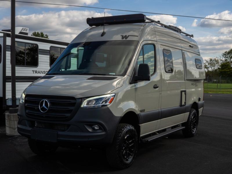 Go off-grid and off the beaten path with the Revel Sport Class B diesel motorhome by Winnebago. There is a 5kWh EcoFlow battery, 210-watts of solar power, plus a 5-in-1 Winnebago x EcoFlow Power Hub Pro with a 3,600-watt inverter, solar charger and more features to keep you powered up! This camper van sits on the durable Mercedes-Benz AWD sprinter chassis with a 2.0L high-output turbo-diesel engine. You will also find a MBUX touchscreen multimedia infotainment system, heated cab seats, plus added safety features, such as active braking assist and blind spot assist. The interior of the Revel Sport is outfitted with heavy duty vinyl flooring throughout to withstand your adventrous lifestyle, and there are RAM Tough-Track mounts throughout to keep your gear secure. Additional features include a hydronic heating system, aluminum running boards with ground effect lighting, a 5,000 lb. trailer hitch, and so much more!