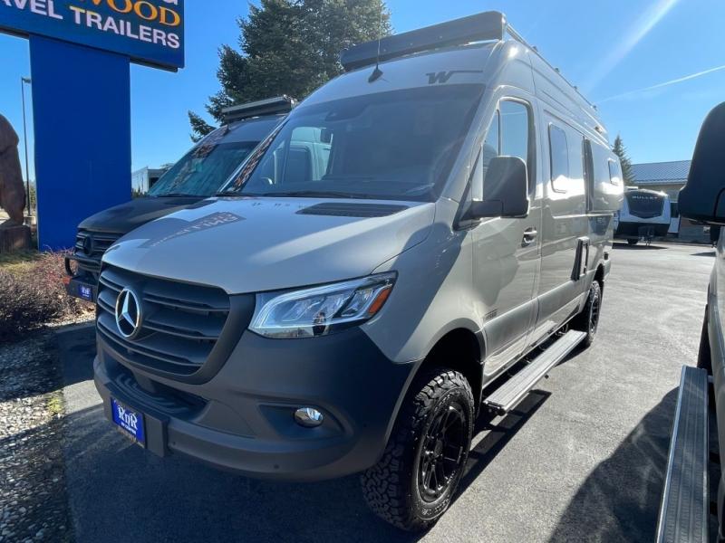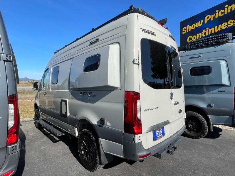 Go off-grid and off the beaten path with the Revel Sport Class B diesel motorhome by Winnebago. There is a 5kWh EcoFlow battery, 210-watts of solar power, plus a 5-in-1 Winnebago x EcoFlow Power Hub Pro with a 3,600-watt inverter, solar charger and more features to keep you powered up! This camper van sits on the durable Mercedes-Benz AWD sprinter chassis with a 2.0L high-output turbo-diesel engine. You will also find a MBUX touchscreen multimedia infotainment system, heated cab seats, plus added safety features, such as active braking assist and blind spot assist. The interior of the Revel Sport is outfitted with heavy duty vinyl flooring throughout to withstand your adventrous lifestyle, and there are RAM Tough-Track mounts throughout to keep your gear secure. Additional features include a hydronic heating system, aluminum running boards with ground effect lighting, a 5,000 lb. trailer hitch, and so much more!