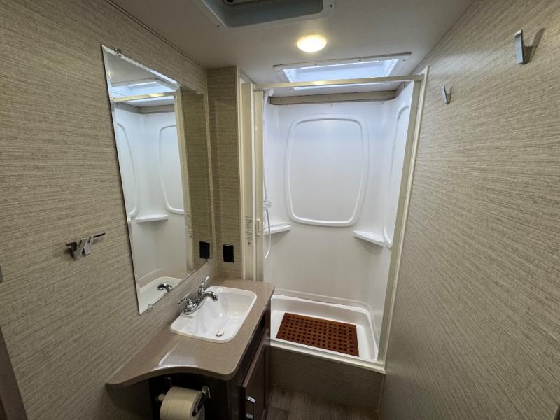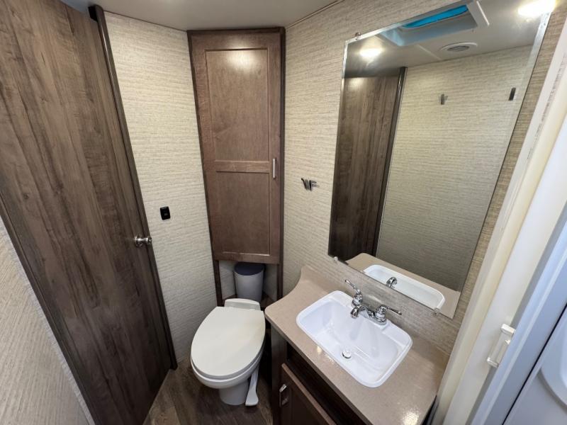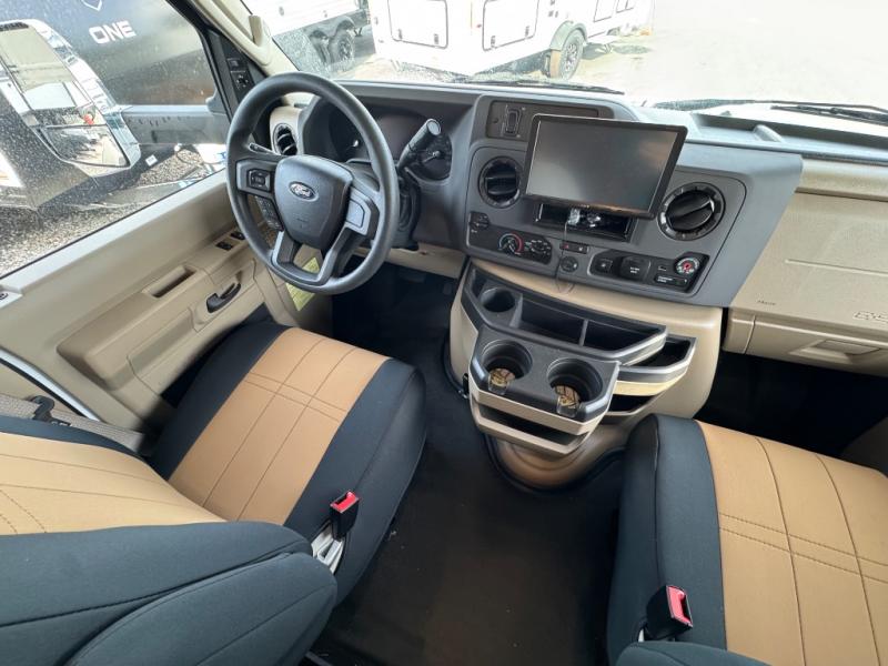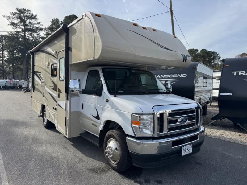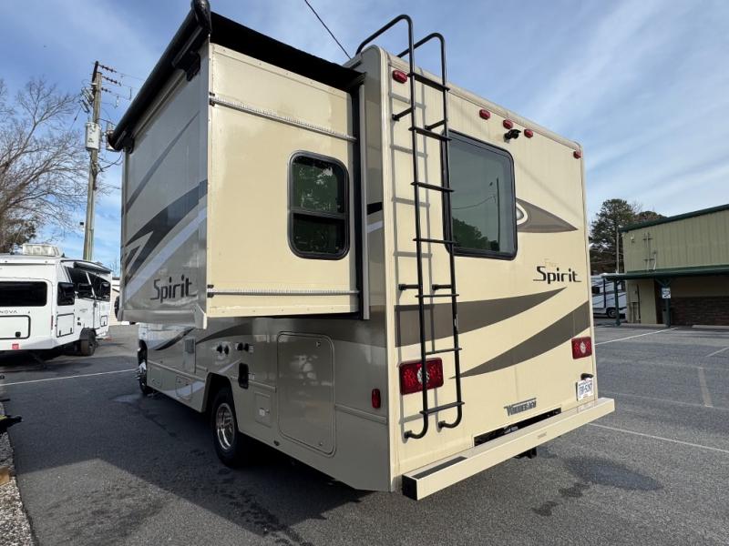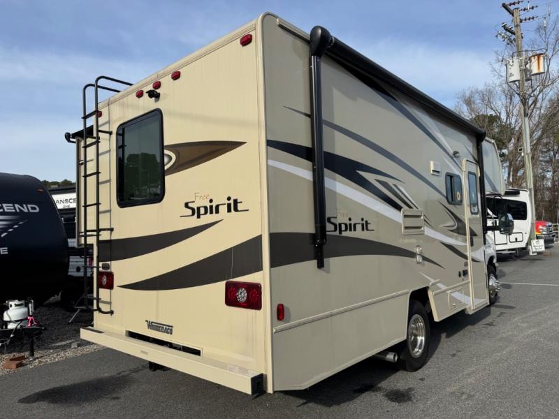 Each Spirit Class C gas motorhome by Winnebago features a powerful 7.3L V8 premium engine with a durable Ford E450 chassis. The exterior is eye-catching with its premium high-gloss fiberglass skin, along with the molded front cap, and your choice of four exterior color options. Your journey will be made enjoyable by the multi-adjustable slide/recline cab seats, and the radio/rearview monitor system includes an 8.95" multi-function touchscreen with a rear color camera for easy maneuvering in and out of campgrounds. Each model includes Corian solid surface countertops, vinyl flooring throughout, black-out roller shades, plus many more comforts you won't want to camp without!