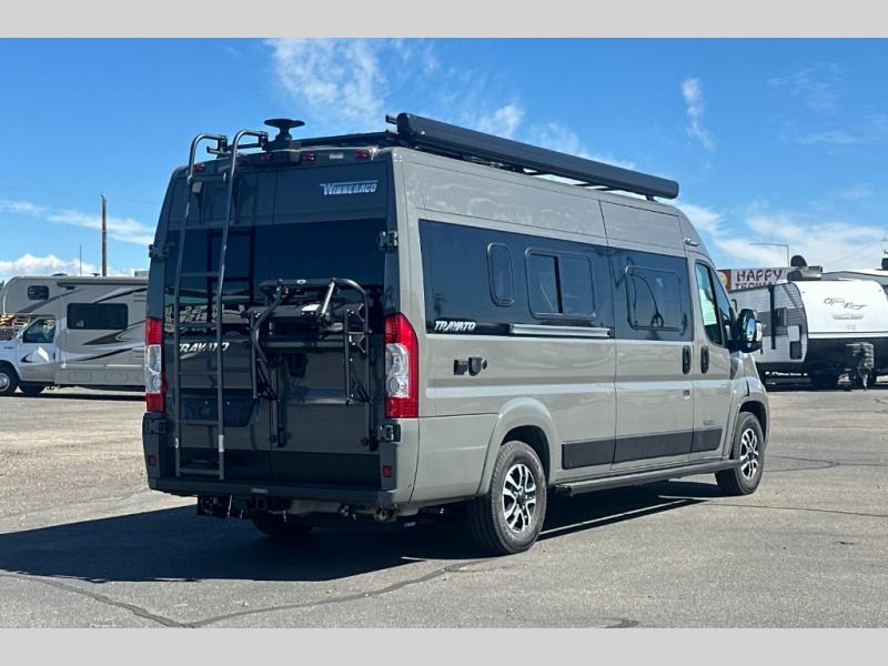 Each one of these Winnebago Travato Class B gas motorhomes are perfect for adventure seekers of all types! The rear annex extends your living space and gives you the versatility of hanging wet gear, using it as an outdoor shower, or an impromptu awning. They are powered by a Ram ProMaster 3.6L V6 gas engine with 280 HP and a 9-speed automatic transmission, and include a radio/rearview monitor system with navigation, USB ports, and more to make the drive easier than ever. The superior craftsmanship consists of a Truma Combi Eco Plus heating system that can run off of propane or electricity, aluminum running boards with logoed tread, ground-effect lighting and pet loop attachment so even your furry friends can come along. You will also find RAM Tough-Track Mounts throughout for your gear, tinted coach windows and blackout cassette shades for added privacy, plus a 24" HDTV and Bluetooth soundbar to ensure you'll never go bored!