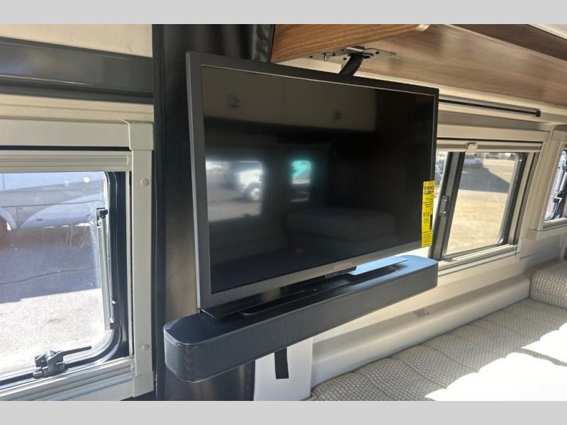 Don't pass up your chance to travel in true luxury with this motorhome! After a long day of traveling, you can rest up on one of the two twin beds which can be converted into a 74" x 76" bed with the flex bed system. Freshen up in the rear 25" x 43" wet bath with a fold down lavatory sink and a wardrobe to store your clothes and towels, plus sliding doors for privacy. You don't have to eat fast food while on the road either thanks to the single burner induction cooktop and single door 4.3 cu. ft. compressor-driven refrigerator/freezer, plus you have a flip-up countertop extension to make your meal prepping easier. The adjustable/removable table and mount makes it easy to eat your meals in different areas of the motorhome too. This model also comes with the Pure3 energy management system which has a 3-module lithium-ion energy pack, 3,200 watt inverter, a Bluetooth control module, an energy pack heating system, and a second dedicated alternator powered by the chassis engine!