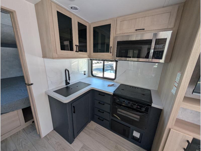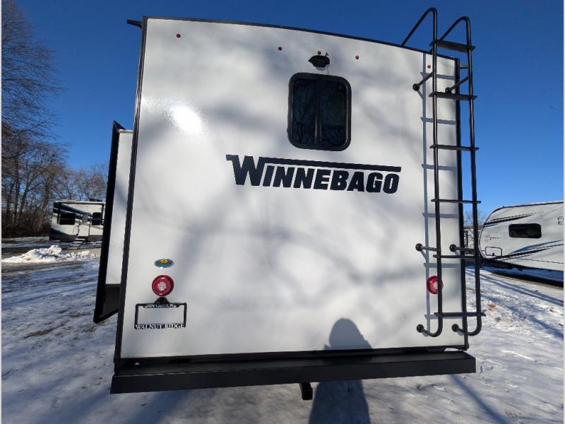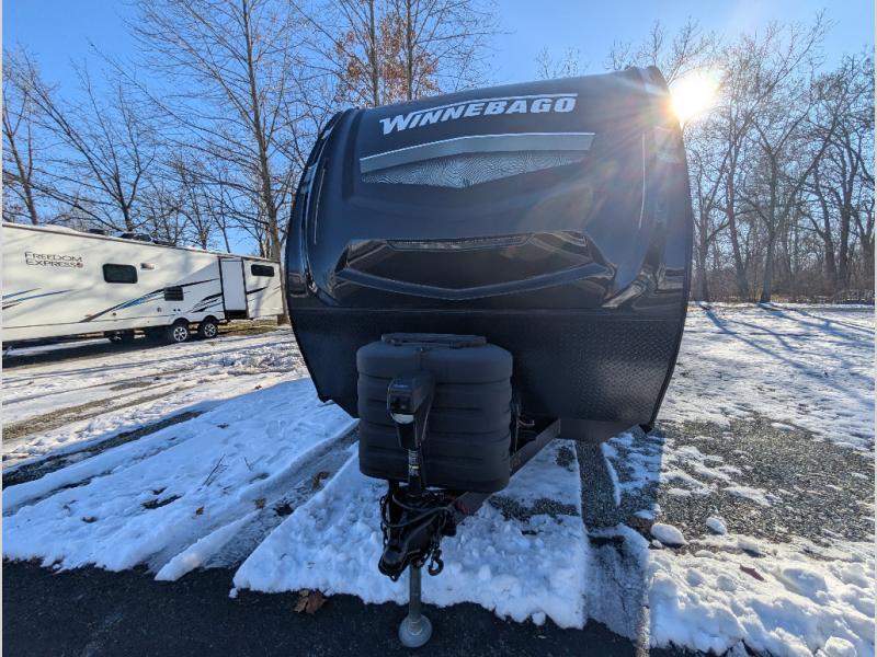 Each Voyage travel trailer by Winnebago includes a 200-watt solar panel with a 30 amp-charge controller and resettable breaker so you can camp off-grid. Also included is a heated and enclosed underbelly with radiant foil insulation for four seasons of travel, 2" thick FILON® MAX fiberglass sidewalls and a painted gel coat front cap with integrated LED lighting, a walk-on roof, plus power stabilizers for easy setup and stability. The interior offers many comforts of home, large windows, LED ceiling lights, ductless flooring throughout, and full kitchen amenities. No voyage is better than the one taken in a Voyage travel trailer! Come choose your model today!