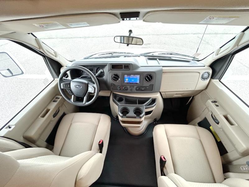 With any Four Winds ESpec Essential Class C gas motorhome by Thor Motor Coach, you will find convenient amenities, a modern interior, and a reliable Ford E-Series chassis, with an optional Chevy chassis on select models to power your adventures. There is welded tubular aluminum roof and sidewall cage construction, a one-piece fiberglass front cap, and premium one-piece Crossflex exterior roofing for added strength. Residential vinyl flooring will be easy to keep clean, and you'll love the sleek look of the Coastline Grey flat panel cabinet doors. These motorhomes also include a 4.0 kW gas generator and a 30-amp shoreline power cord to keep you going, along with a tankless water heater and 13,500 roof front A/C to ensure your comfort!