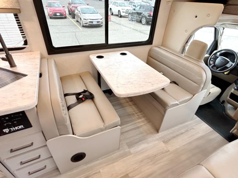 With any Four Winds Class C gas motorhome, you can travel in a trustworthy Ford E-Series chassis with 325HP, or a Chevrolet chassis with 401HP if you choose that option which is available on several models. Each is built with welded sidewall cage construction and a welded tubular aluminum roof, a one-piece fiberglass cap, and includes a slick fiberglass exterior with graphics package for style and years of enjoyment on the open road. Inside, you will enjoy the well-equipped kitchen, the spacious bathroom, the sleeping accommodations and the Winegard ConnecT 2.0 WiFi/4G/TV antenna that allows you to stay connected. With several floorplans to choose from and options to add, you will surely find one that fits your family's needs or your friend's approval. Choose today!