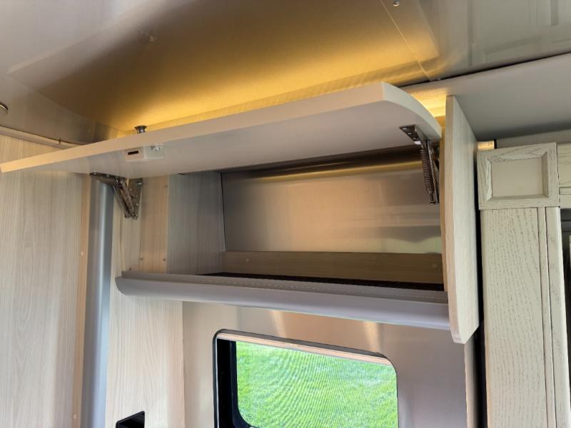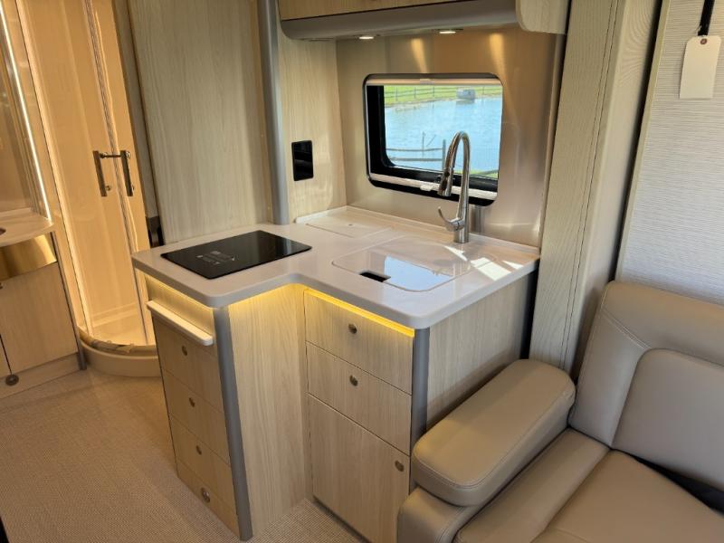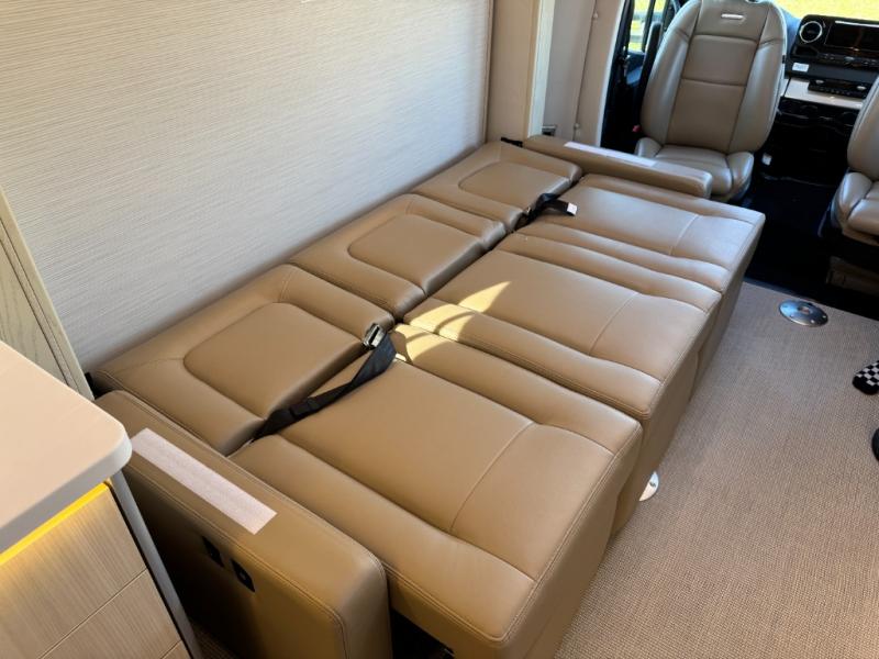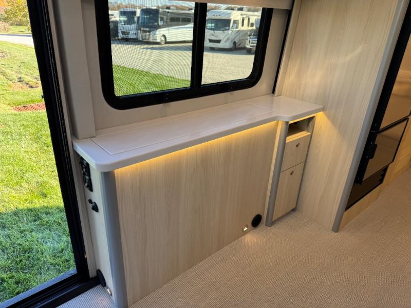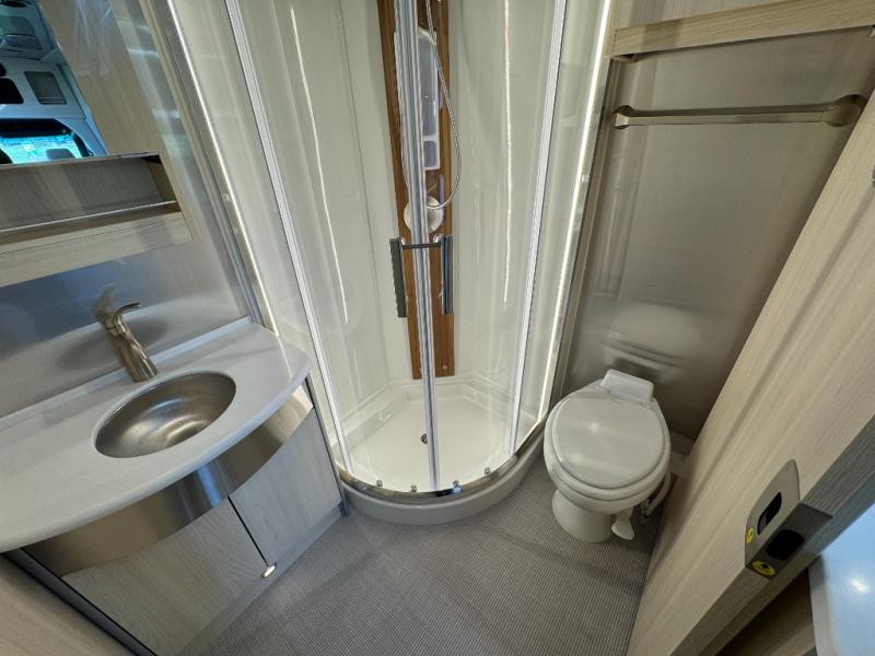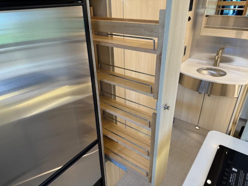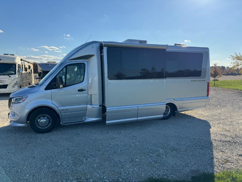With the Atlas Class B+ diesel motorhome by Airstream, you not only get an enduring Airstream design, conveniences and luxury features, but also the proven Mercedes-Benz safety systems and performance. The coach is built with Azdel composite roof, floor, and wall material, a vacuum-bonded aluminum framed floor, radius walls, a fiberglass crowned roof for extra headroom, trimless smooth fiberglass body seams, and molded fiberglass front and rear caps. And the Mercedes-Benz 2.0L turbo charged 4-cyliner high-output diesel engine will power your many excursions! The main cabin offers adjustable LED lighting, flush-mount cabinet hardware and soft close doors, a Froli ergonomic bed support system for a good night's sleep. You will enjoy Ultraleather seating, USB charging ports for your electronics, marine woven synthetic flooring, and matte finish laminate cabinetry to mention a few highlights.